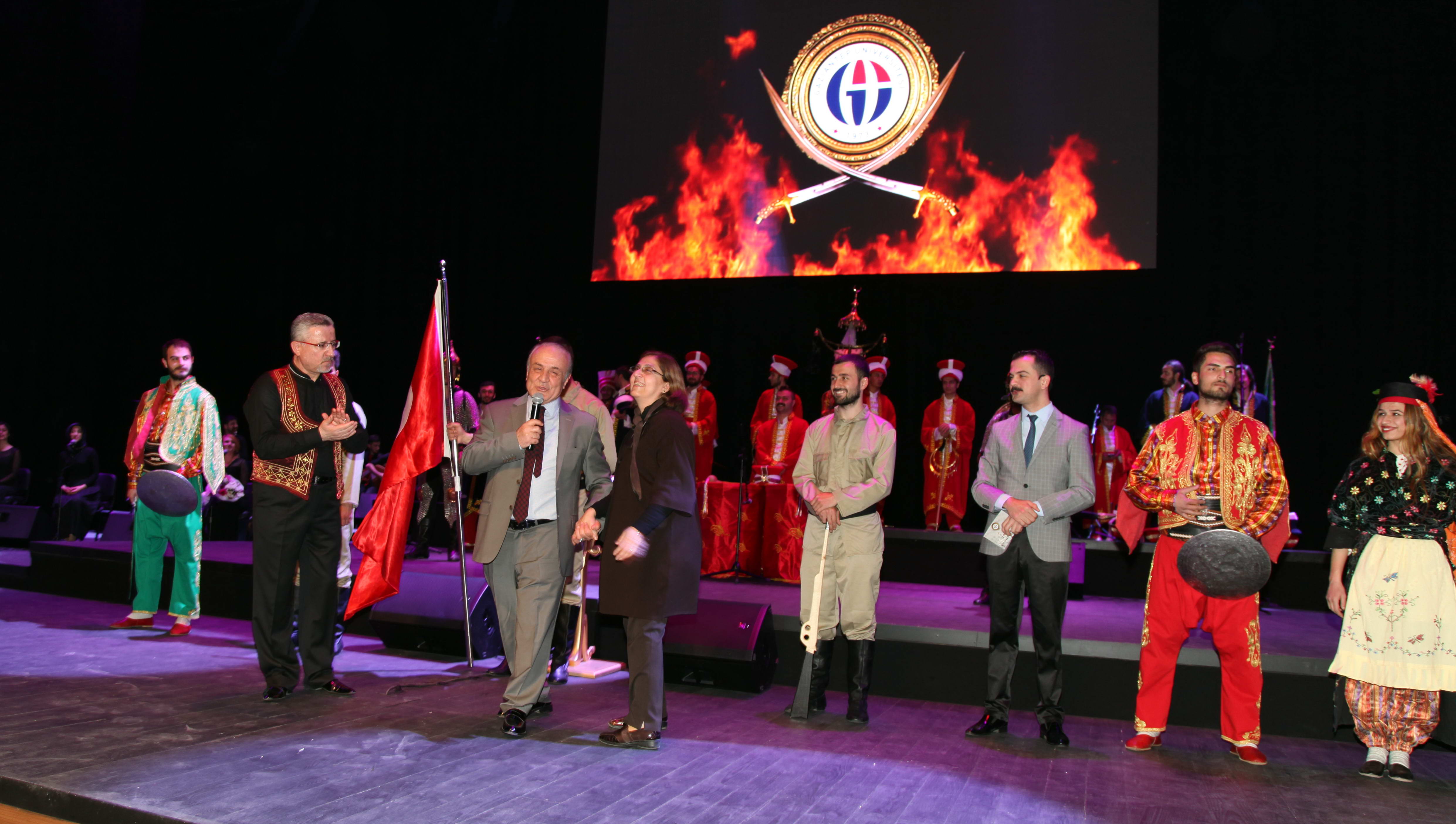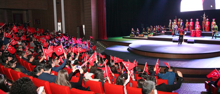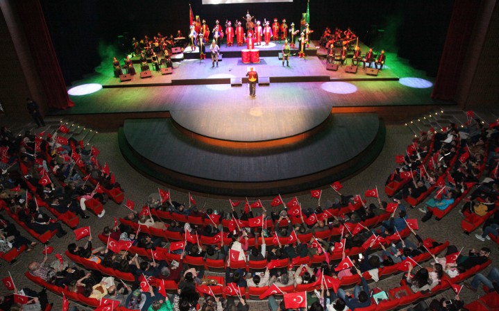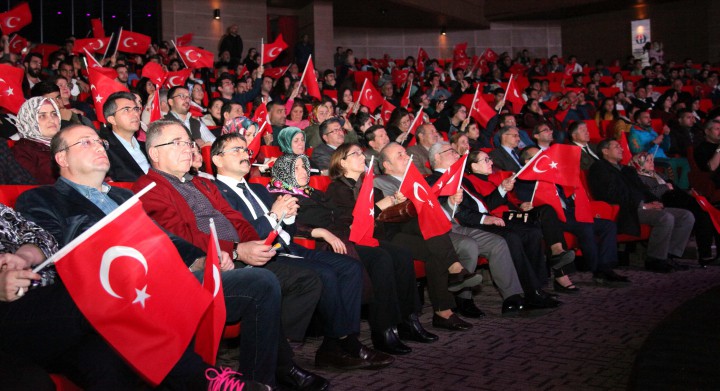 Emrah Yazar’ın sunumuyla gerçekleşen; Çanakkale İçinde Aynalı Çarşı, Hoş Gelişler Ola, Vurun Antepliler gibi Çanakkale Zaferi’ni anlatan halk müziği eserlerinin seslendirildiği konserde, mini filmler ve gösterilen fotoğraflar katılımcılara duygu dolu anlar yaşattı. Türk Halk Oyunları ve semazen gösterilerinin de keyifle izlendiği gecenin sonunda, ‘Bir Şarkısın Sen’ eserini seslendiren Rektör Prof. Dr. Coşkun ise salondan büyük alkış aldı.