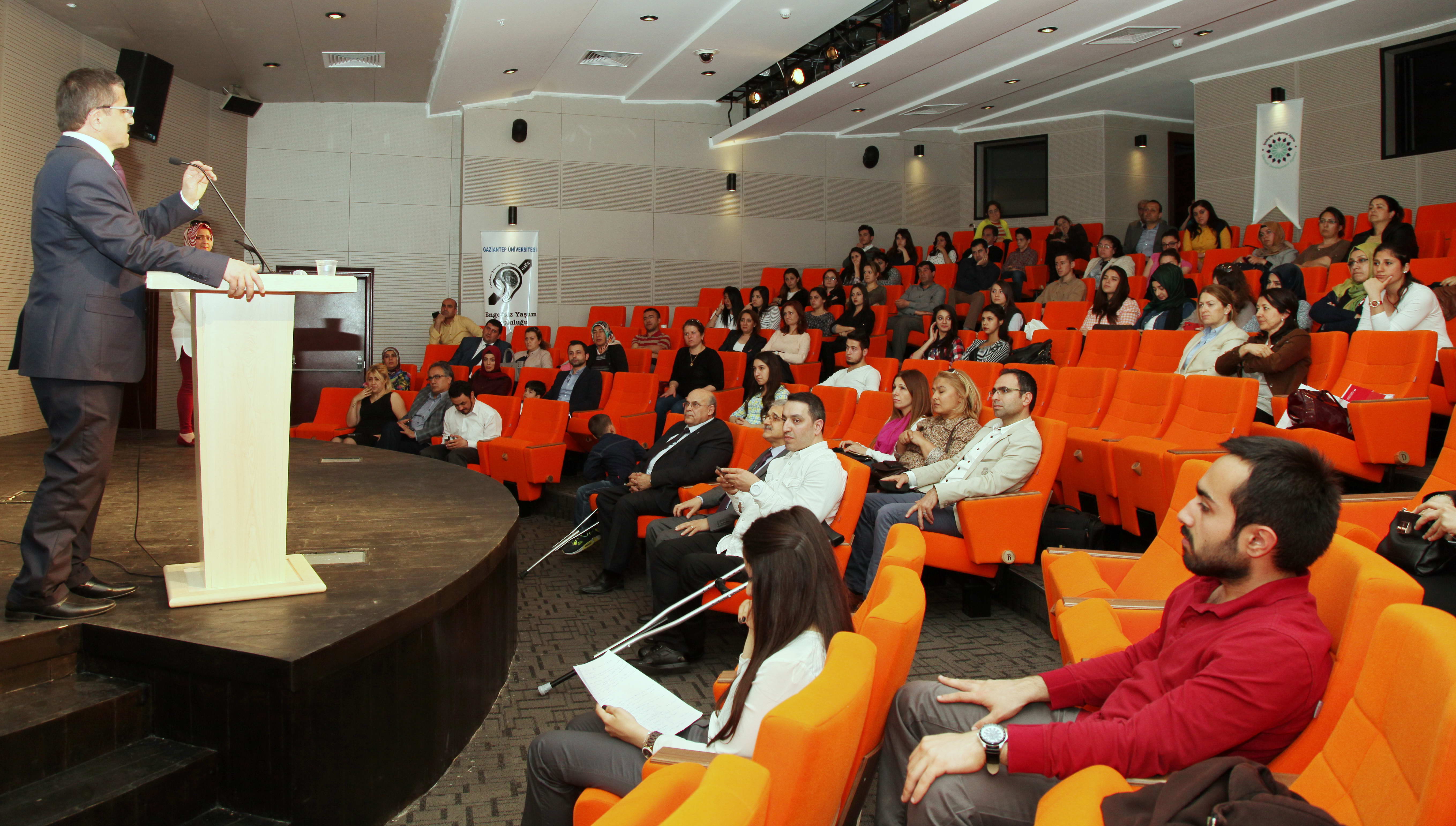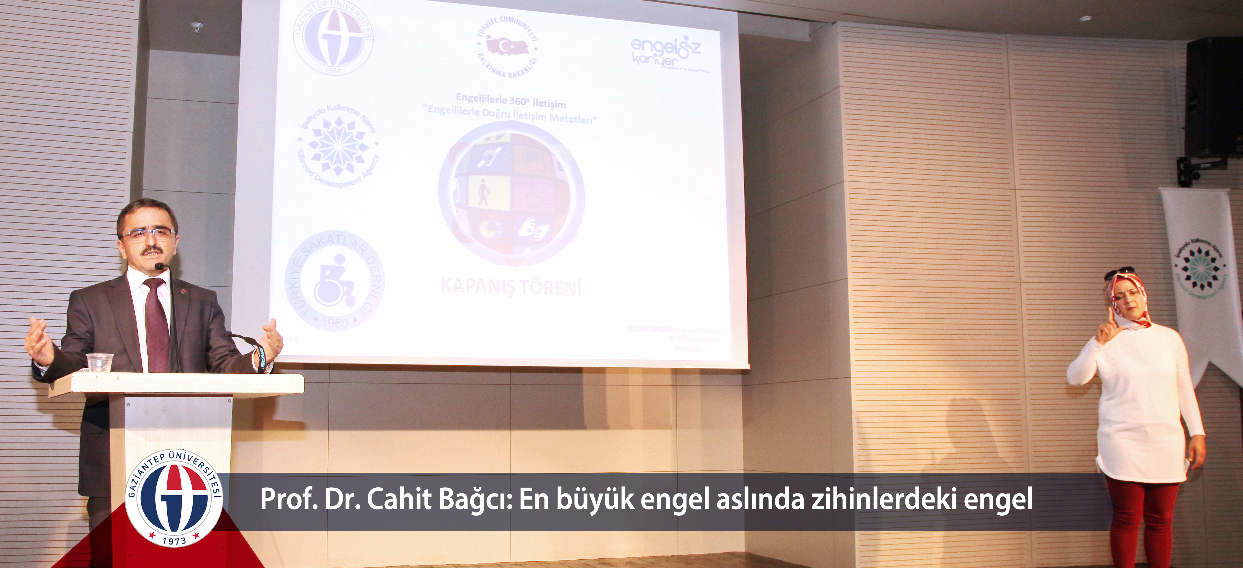 Törenin açılışında konuşan Rektör Vekili Prof. Dr. Cahit Bağcı, “Her birimizin ailesinde bir engelli olması gerekmiyor. Biz insanız, insanın yolunu açmak zorundayız. Hepimiz eşit şartlarda yaşamak zorundayız” dedi. Başta Rektör Prof. Dr. Yavuz Coşkun olmak üzere Gaziantep Üniversitesi olarak bu konuda çok sayıda çalışmaları olduğunu belirten Prof. Dr. Bağcı, “Yeni açtığımız binaların hepsi engelliler için rahatça giriş-çıkışını sağlayacak şekilde düzenlendi. Görme engelliler için parmaklı okuma sistemi, kütüphanede ayırmış olduğumuz, engellilerin ulaşabileceği bir takım yerlerimiz var. Nerden nereye geldiğimiz noktasında biz de epey yol aldık. Bir şekilde yola çıktık, çözümlerimiz var da daha ileri düzeyde olması lazım. En büyük engel aslında zihinlerdeki engel, engellerin önündeki bütün engelleri kaldırmak boynumuzun borcu olsun” şeklinde konuştu.