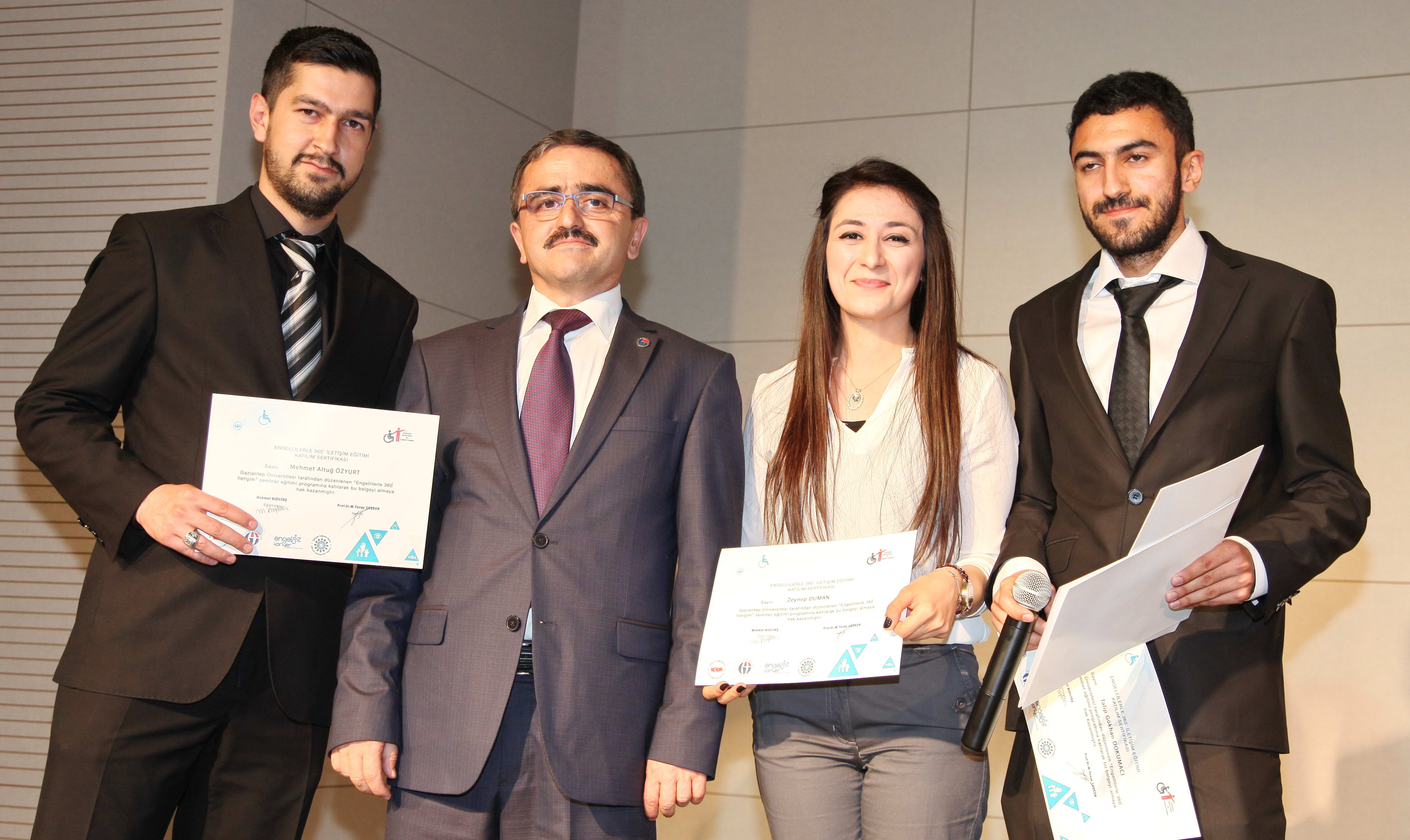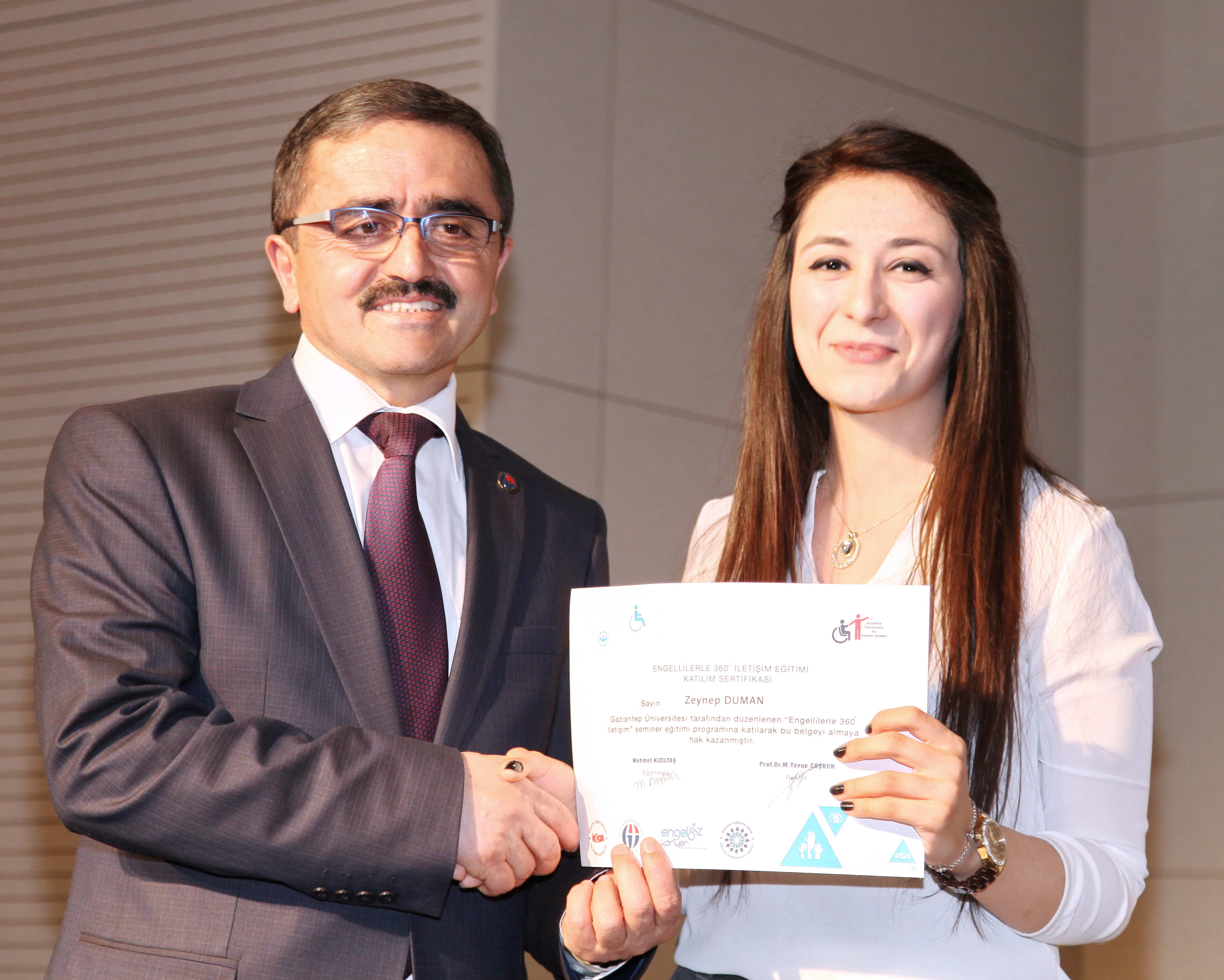 İpekyolu Kalkınma Ajansı desteğiyle Gaziantep Üniversitesi (GAÜN) Mavera Kongre ve Sanat Merkezi’nde gerçekleştirilen “Engellilerle 360 Derece İletişim” eğitim semineri sertifika ve kapanış töreninde, 700 GAÜN akademik ve idari personel ile öğrenciye sertifikaları verildi.