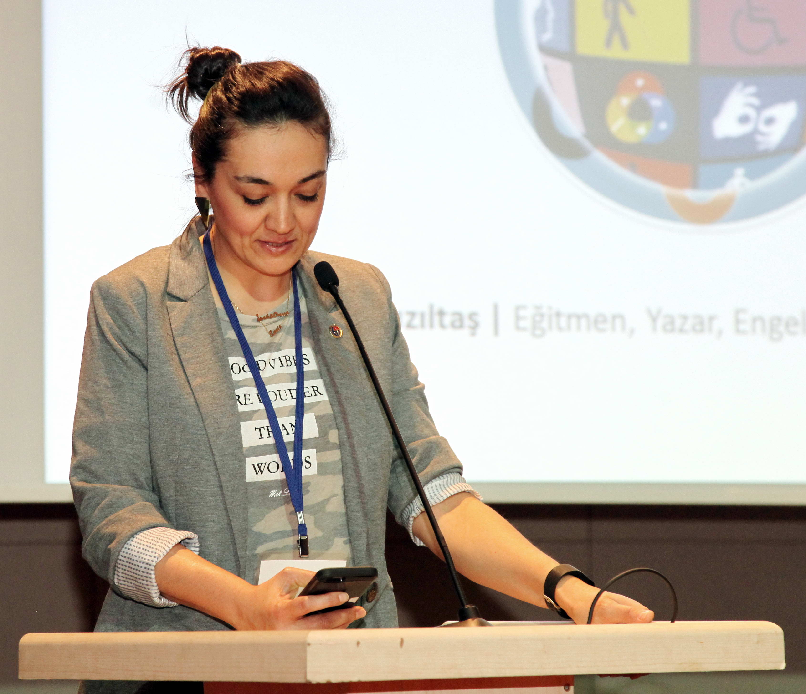 İletişimin beyinde başlayıp, beyinde bittiğini vurgulayan Eğitmen Mehmet Kızıltaş, “Bütün bariyerlerin aslında iletişimde engelimizin önyargıların olduğunu gördük. Seminerde az önce patlak olan ve patlak olmayan bir top yapmıştım. Topa patlak olarak değil havası sönük olarak bakmanız gerekiyor. Bizler engelli değiliz sadece önümüze konulan bariyerleri aşamadığımız için engelliyiz” dedi.