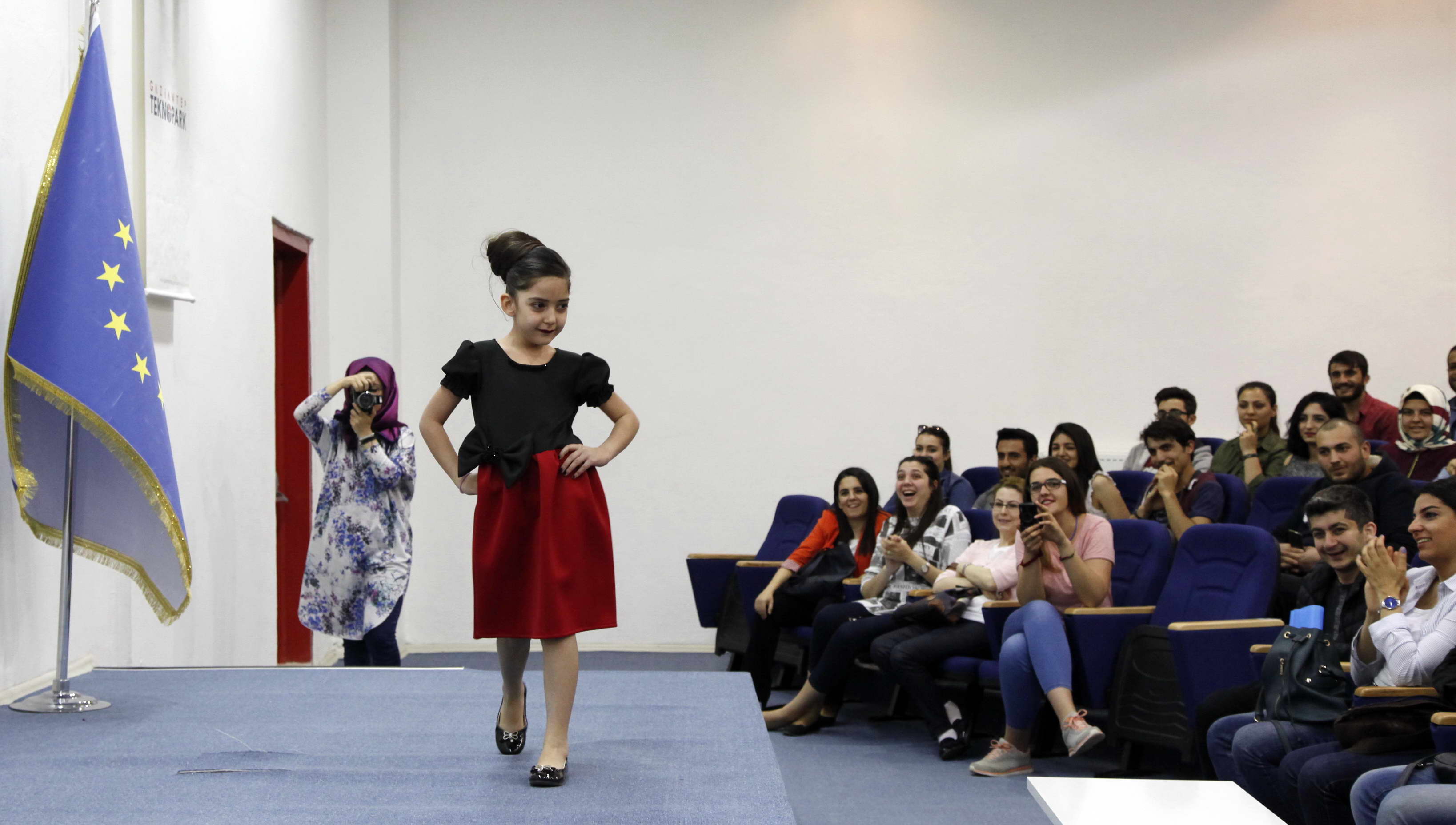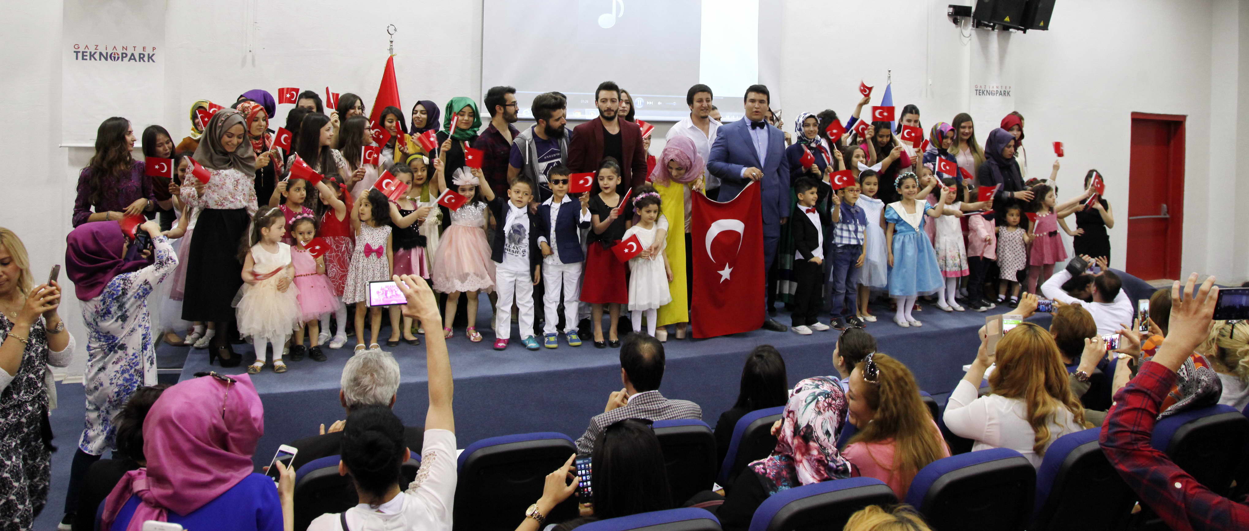 23 Nisan Ulusal Egemenlik ve Çocuk Bayramı nedeniyle düzenlenen “Çocuk Kıyafetleri Defile Organizasyonu” Gaziantep Teknopark Konferans Salonu’nda gerçekleşti. GAÜN Güzel Sanatlar Fakültesi Moda ve Tekstil Tasarımı Bölümü öğrencileri tarafından tasarlanan GAÜN’lü kreş öğrencilerinin büyük bir ustalıkla sergilediği defileyi katılımcılar keyifle izledi.