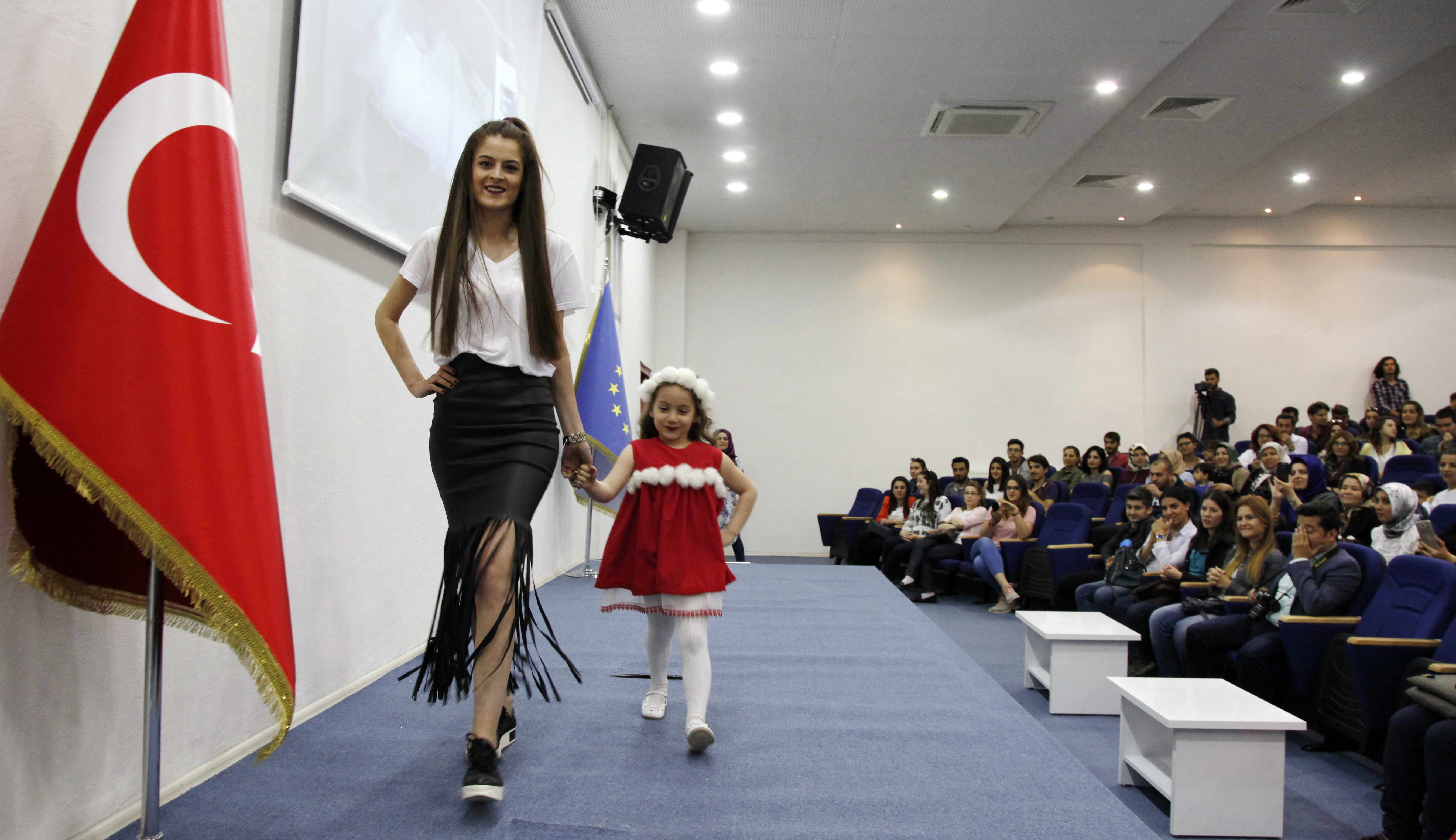 Gaziantep Üniversitesi (GAÜN) Moda ve Tekstil Tasarımı Bölümü öğrencilerinin diktiği çocuk kıyafetlerini GAÜN Kreş ve Anaokulu öğrencileri tanıttı.