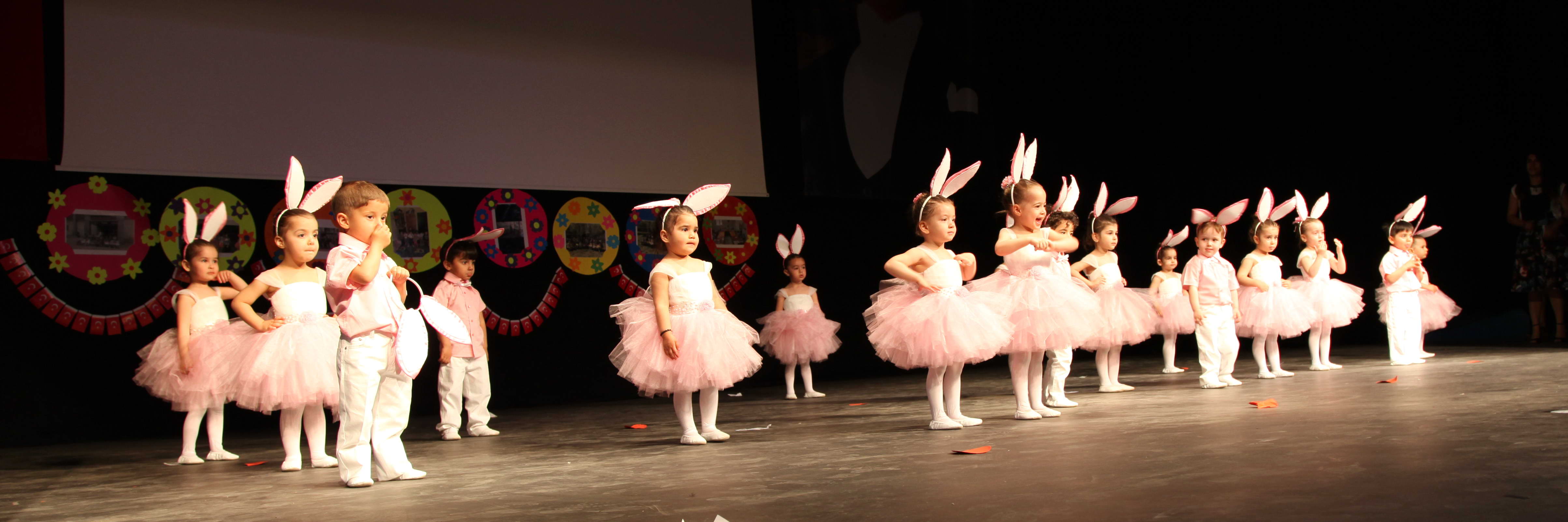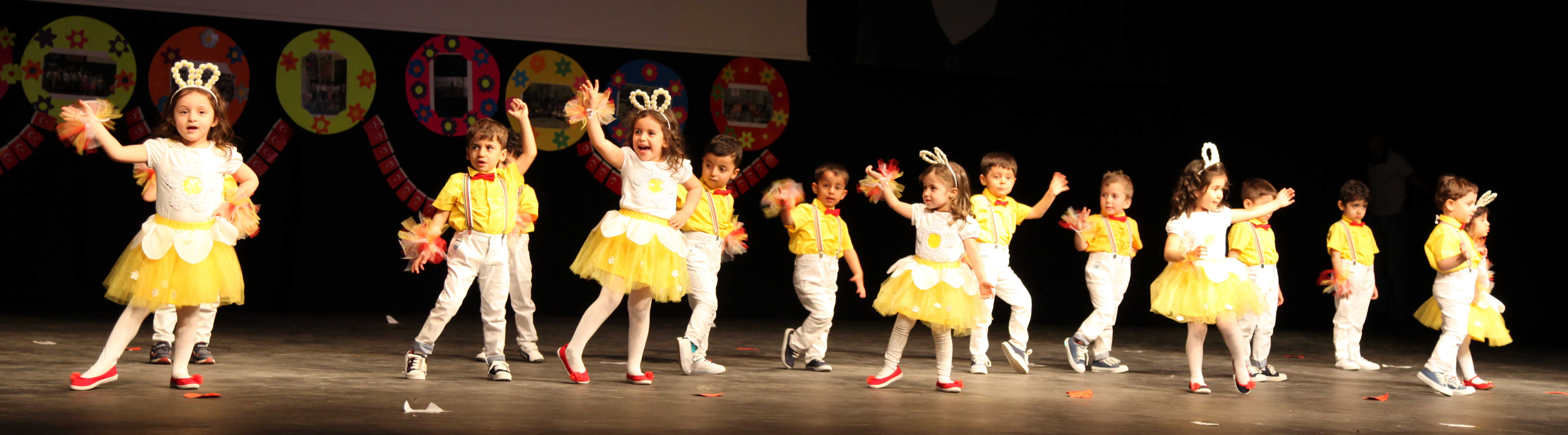 Kreş ve Anaokulunun; Minik kalpler, Elma şekerleri, Parlayan yıldızlar, Deniz yıldızları, Minik dâhiler, Gülen yüzler, Deha şirinler ve Yaratıcı bilginler isimli sınıfların 2-6 yaş grubu arası öğrencileri, çok sayıda müzikal danslarla anne-babalarına ve diğer katılımcılara keyifli bir gösteri sundu. 6 yaş grubu çocukların “Dünya Çocukları Dansı” ve İstiklal Marşı Milli Duygular” gösterisi ise büyük beğeni topladı.