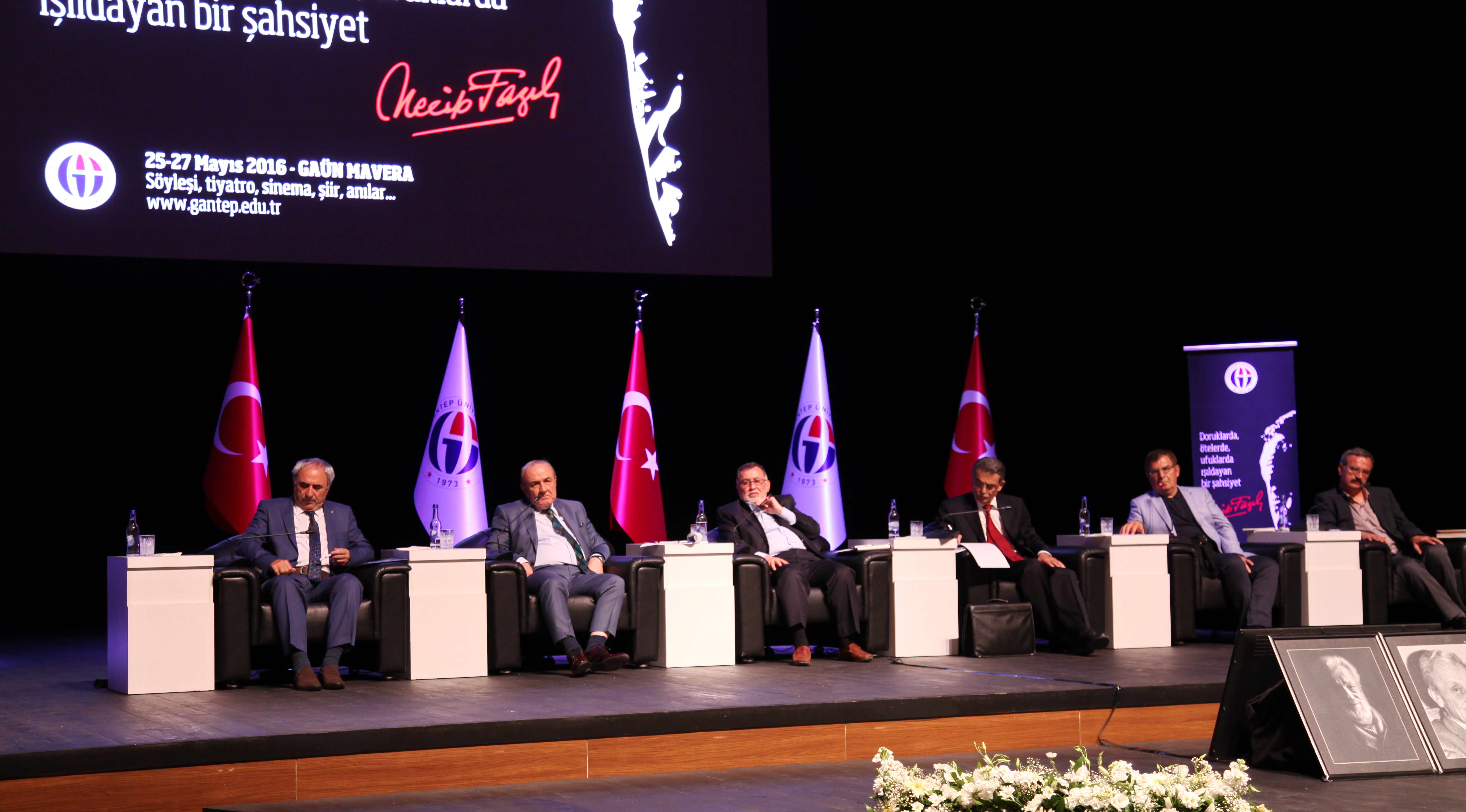 GAÜN Mavera Kongre ve Sanat Merkezi’nde 3 gün süreyle devam edecek olan anma etkinliğinde Türk edebiyat ve siyasetinin önde gelen eski bakan, ve milletvekilleriyle, şair, yazar ve gazeteciler Necip Fazıl Kısakürek’i anlatıp, eserlerinden örnekler sunacağı etkinliğin bugünkü bölümünde GAÜN Rektörü Prof. Dr. Yavuz Coşkun, eski bakan Sami Güçlü, Nurullah Genç, Necip Evlice, Arif Ay, Mustafa Kanlıoğlu Necip Fazıl Kısakürek’in sanata bakış ve hayatından kesitler sundu. Etkinliğin açılış konuşmasını yapan Gaziantep Üniversitesi Rektörü Prof. Dr. Yavuz Coşkun, Kısakürek ile ortak bir geçmişleri olduğunu belirtirken şunları söyledi: “Üstad , benim fikir hayatımda çok büyük emeği olan ve o konuda hamurkar diyebileceğim birçok genç insanın fikri temellerinin oluşmasında katkı vermiş, hakikaten doruklarda, ötelerde ve ufuklarda müstesna bir şahsiyettir. Abidevi bir şahsiyet diyelim. Ama, yetmez. Üstadı bizatihi yanında çalıştığım için, konferanslarına bizatihi iştirak ettiğim için kendisiyle oturup zaman zaman sohbet etme fırsatı bulabildiğimiz için kendimi bahtiyar addederim. Çünkü, Necip Fazıl ne dersiniz deyin pozitif anlamda oydu. Başkaldıran bir insan mı arıyordunuz? Necip Fazıl. Yeni şeyler söyleyen insan mı arıyordunuz? Necip Fazıl. O pörsümüş denilen eskiyi, eski olmadığını, eskimeyeceğini tekrar dile getiren bir insan mı arıyorsunuz? Necip Fazıl. Başımızda kulak istiyor diye manşet mi atmasını istiyordunuz birisinin? Adres Necip Fazıl.Hapislerde çile çeken, ve fakat yılmayan, inadına bildikleri doğruyu yıllar boyunca, on yıllar boyunca savunup topluma bizatihi fildişi kulelerden değil, yüz yüze anlatan birisini mi arıyordunuz? Necip Fazıl. Şairlerin sultanını mı görmek istiyorsunuz, duymak mı istiyorsunuz? Necip Fazıl.”