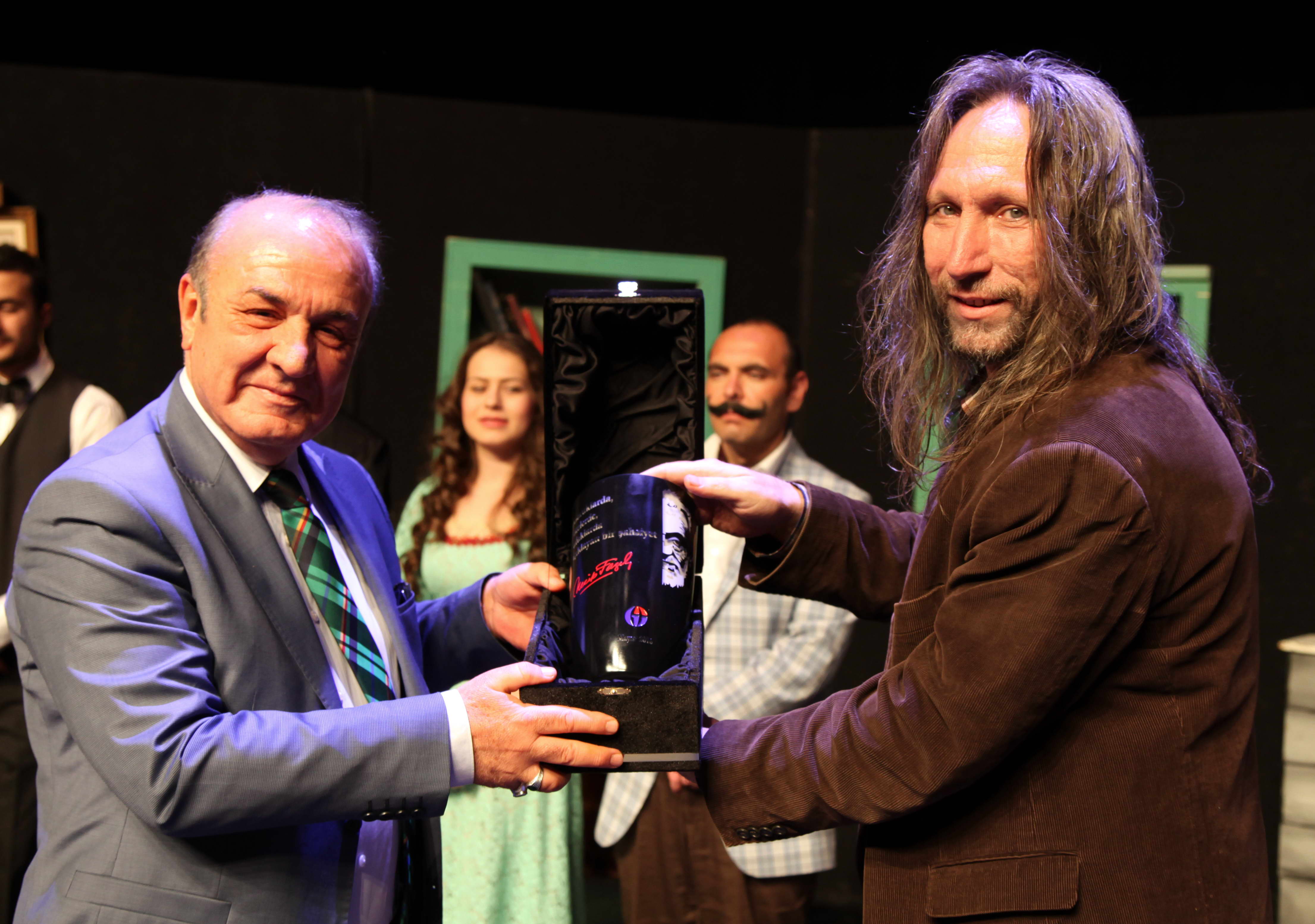 Bütün katılımcıların keyifle izlediği tiyatronun sonunda Yöneten Mehmet Tahir İkiler’e hediye takdim eden Rektör Prof. Dr. Coşkun konuşmasında şunları söyledi: “Muhteşem mi diyeyim veya bir piyesin şahikasında mı hissettiğinizi sorayım yoksa içinizin, beyninizin titrediğini, gözlerinizin yaşardığını mı sorayım. Bütün bu ruh hallerinin hepsini birden bu gece de yaşadığımızı mı sorayım. Doğrusu bütün bunların cevabı hepsi. Bu güzel ekibi, güzel insanları, namütenahi olağanüstü performansı daha önce keşfedemediğim, bu konuda eksikliğimi bugün bana hissettirdikleri için üzgünüm, pişmanım. ‘Hani o öteler öteler gayemin malı’ diyor ya onu diyen üstadın biz ötelere bakarken yakınımızdaki bu güzel insanları fark edemiyoruz. Sizi Gaziantep’te bu güzel sahnede, salonlarda, merdivenlerde yer olmayacak tarzda tekrar ağırlayacağız, tekrar buraya şeref vereceksiniz. Gönlümdeki en güzel hislerle sizleri tebrik ediyor, başarınız için canı yürekten teşekkür ediyorum. İnşallah bir daha Üstadı illa 25 Mayıs’ta değil onu her zaman yad etme babında bir şekilde yine beraber olacağımızı ümit ediyorum.”