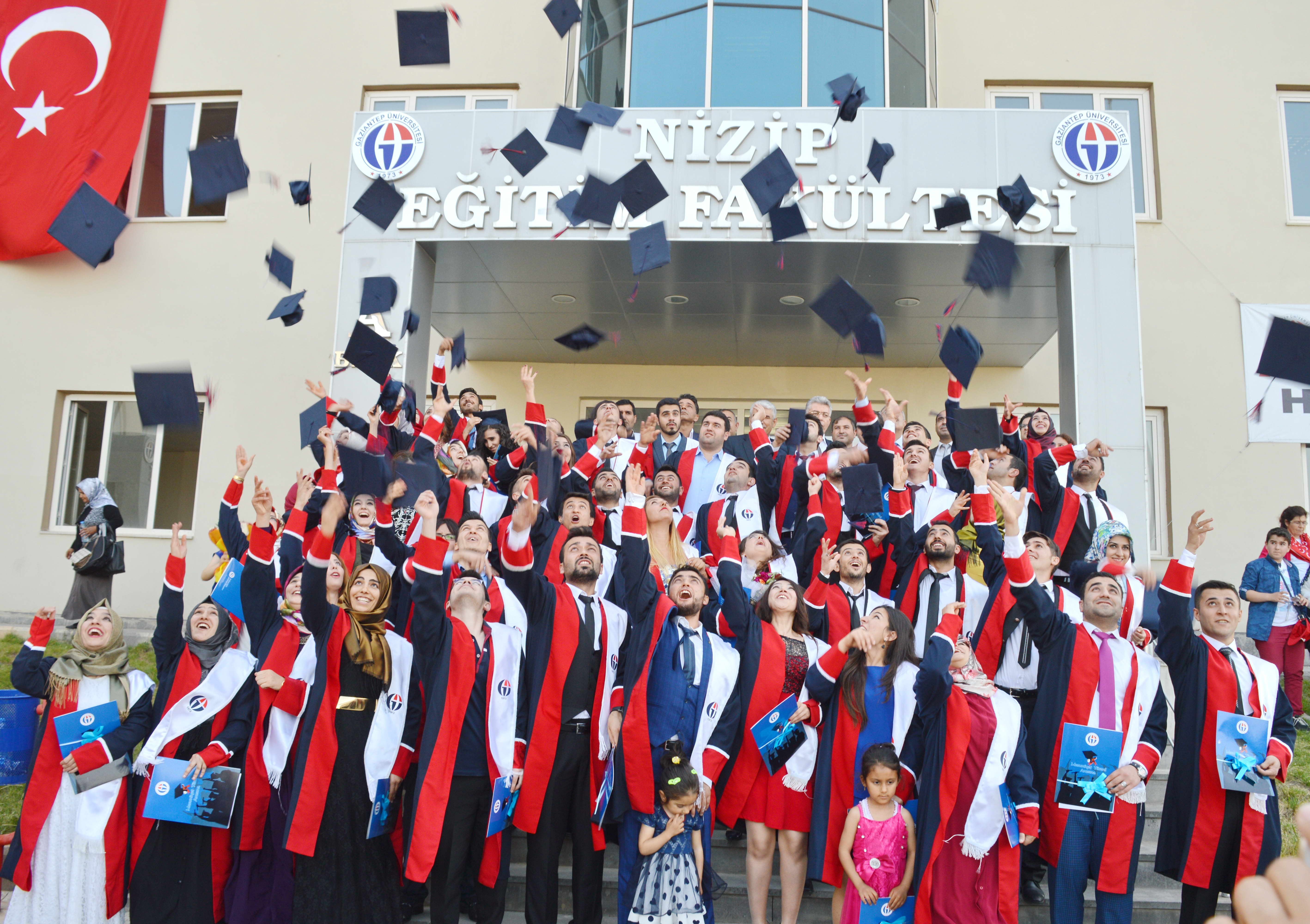 Gaziantep Üniversitesi (GAÜN) Nizip Eğitim Fakültesi mezuniyet töreni; Nizip Eğitim Fakültesi Konferans Salonu’nda saygı duruşu ve İstiklal Marşı’nın okunmasıyla başladı. Fakülte birincisi Güllü Dövencik’in yaş kütüğüne isim çakması sonrasında, Nizip Eğitim Fakültesini tanıtan kısa film gösterisi sunumu yapılarak, Nizip Eğitim Fakültesi Eğitim Bilimleri Bölüm Başkanı Yrd. Doç. Dr. Fatih Bozbayındır eşliğinde öğretmenlik andı okundu. Nizip Eğitim Fakültesi Dekanı Prof. Dr.…