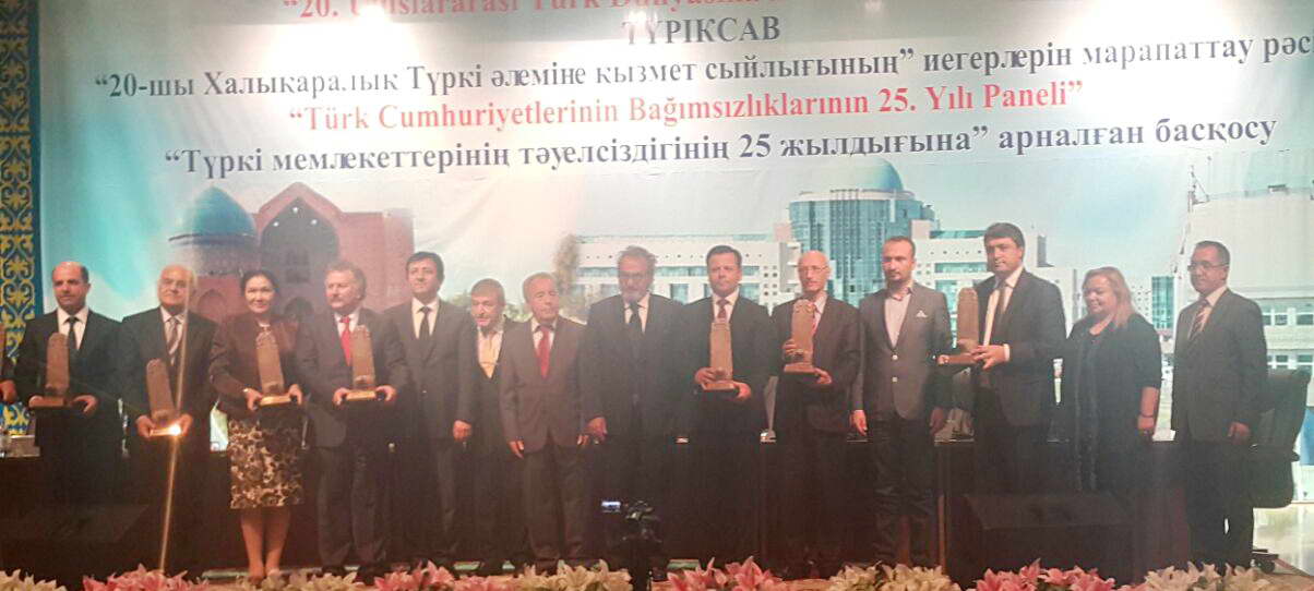Kazakistan’ın Türkistan Kenti’nde gerçekleştirilen ödül töreninde Öğretim Üyeleri Doç. Dr. Erdal Bay ve Doç. Dr. Servet Demir Gaziantep Üniversitesi’ni temsilen katıldı. Törende düzenlenen Türk Cumhuriyetlerinin Bağımsızlıklarının 25. Yılı konulu panelde konuşan Doç. Dr. Erdal Bay, şunları söyledi: “Rektörümüz Yavuz Coşkun Hocamızın verdiği desteklediği Balkanlar’dan Orta Asya’ya kadar Türklerin yaşadığı tüm coğrafyalarda eğitim çalışması veriyoruz. İsmail Gaspıralı’nın ‘Dilde, İşte, Fikirde Birlik’ anlayışının gerçekleşmesi eğitime bağlıdır. Aynılıkları, benzerlikleri olan Türklerin ortak bir anlayışa sahip olmalarına katkı sağlamak için Türk Dünyası Vatandaşlığı Projesi’ni geliştirdik. Proje kapsamında üniversitelerde seçmeli ders olarak okutulması için Türk Dünyası Vatandaşlığı ders programı geliştirdik. Proje beş farklı üniversitede 50’den fazla akademisyenin desteğiyle sürdürülmektedir. Tüm bu çalışmalarımız, Oktay Sinanoğlu’nun bir gün gelecek herkes Türk Dünyası vatandaşı olmak istiyorum anlayışının gerçekleşmesi içindir.”