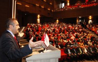 Gaziantep’in ateş çemberinde olmasına karşın, aslında sağduyuyu, istikrarı temsil etiğini kaydeden Rektör Prof. Dr. Gür, özellikle Suriye’deki savaşın bitmesinden sonra burada yapılacak çok işin olduğuna vurgu yaparken şöyle dedi: “Gaziantep istikrarı temsil ediyor. Bu istikrar da bizim iki yönden gelişmişliğimizin kriteri olarak ortaya çıkıyor. Maddesi ve manasıyla. Yarın Suriye’de savaş bitecek. Sorunlar bitecek. Oradaki dağınık yapıyı sadece bayındırlık, iskan çözebilecek mi? Onların savrulan o dini algılarını kim düzeltebilecek? Onlara kim yön verecek? O yüzden ben Gaziantep Üniversitesi’nin ve Gaziantep şehrinin üst akıl olarak sanayisiyle, bütün devlet kurumları ve en önemlisi üniversitesiyle bir irfan meclisi kurulması tarafındayım. Bu irfan meclisi sadece maddesiyle değil, manasını da gündeme almalı, geleceğe vizyon biçmeli. Allah’a hamdolsun ki terör global dünyada korku salarken, Gaziantep hedef gösterilirken, algı üretilirken bu salon hınca hınç dolduruyorsa, insanlar demek ki teröre prim vermiyor. Gaziantepliler olarak bizler bu terörün amacına ulaşmasına asla izin vermeyeceğiz. Toplantılarımız devam edecek. Gaziantep geçmişinde kökünde ilim irfan olan bir şehirdir. İlim irfanın öncülüğünde geleceğini sanayisiyle tamamlanan bir şehirdir. Artık bu meclislerde farklı kelamlar edilmelidir.”