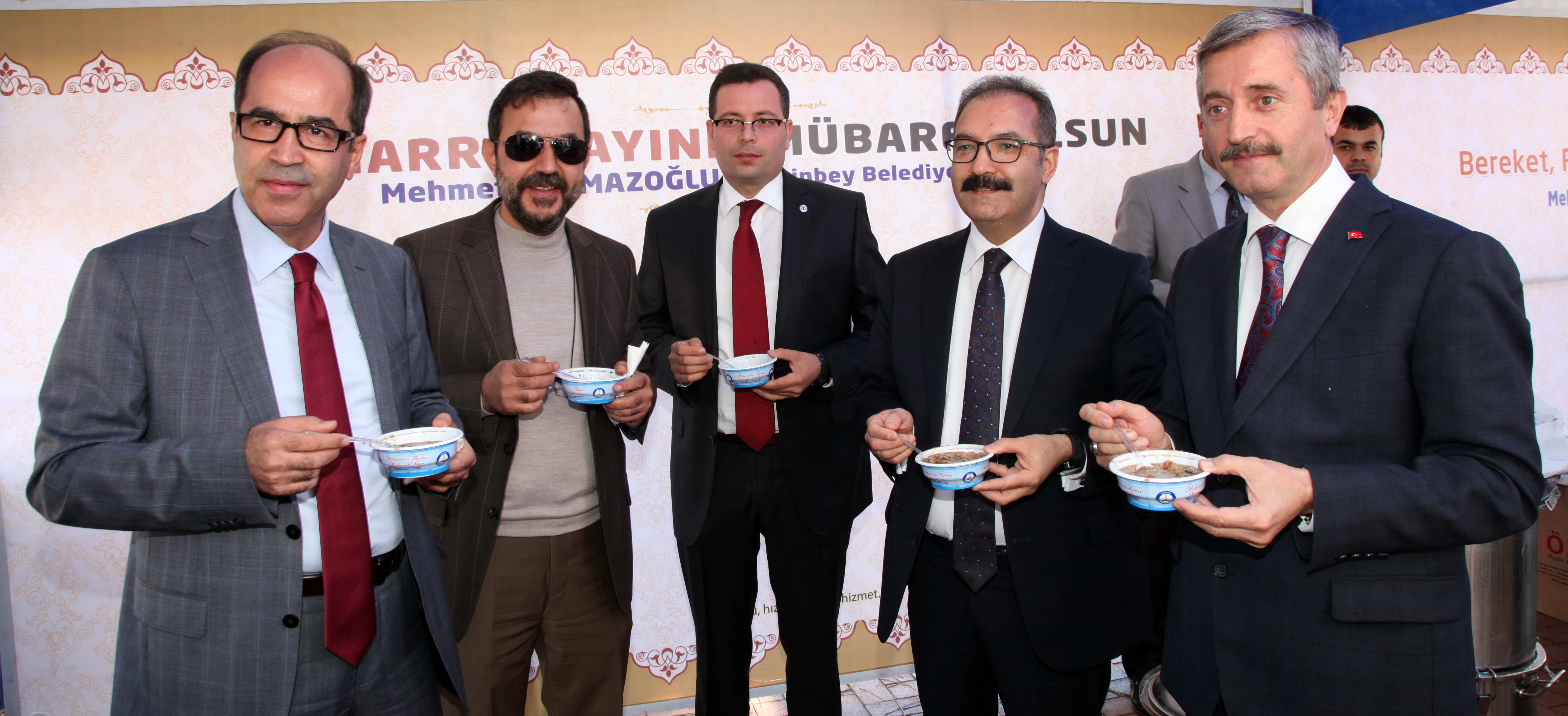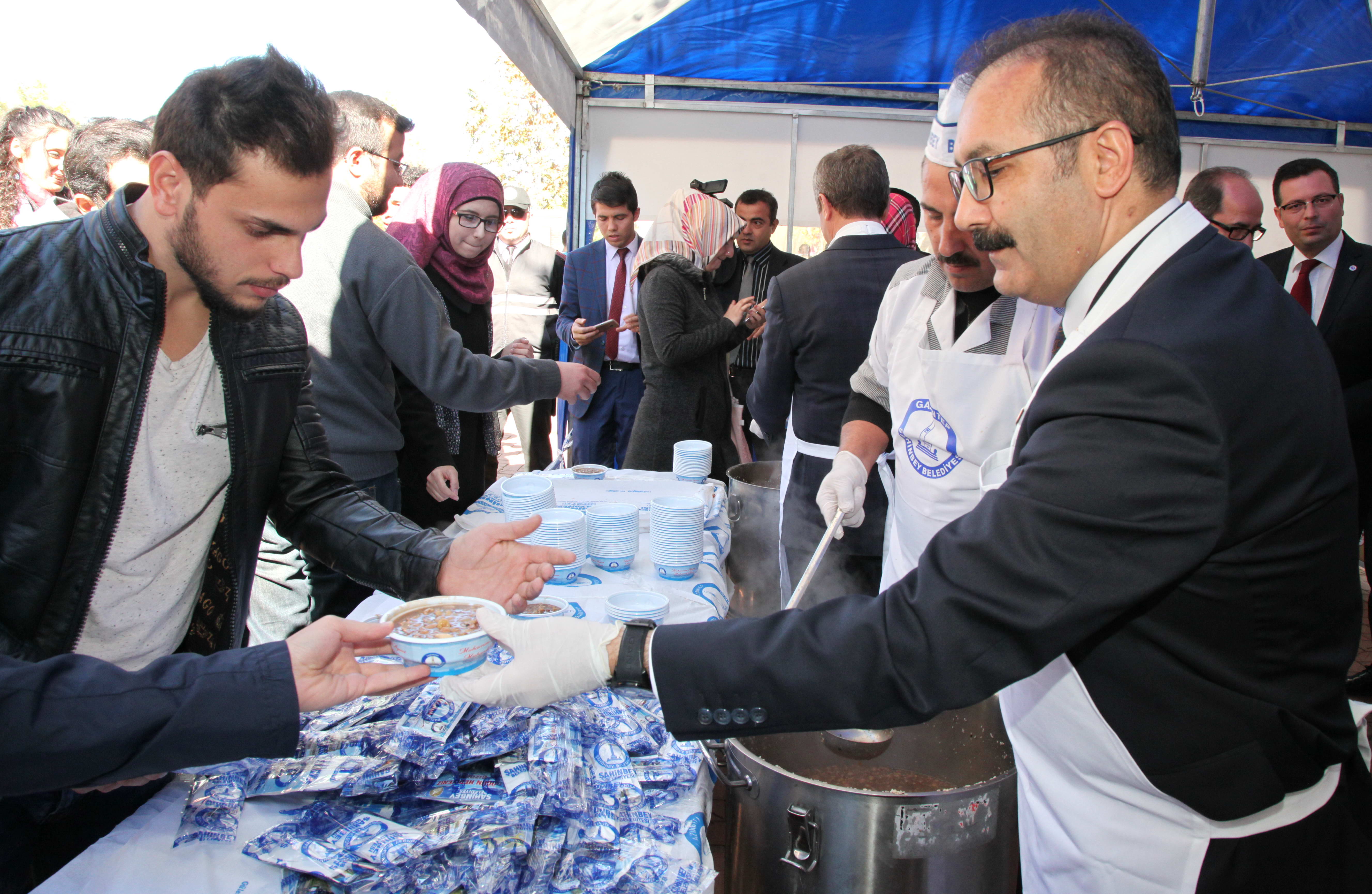 Şahinbey Belediye Başkanı Mehmet Tahmazoğlu ve GAÜN Rektörü Prof. Dr. Ali Gür, Muharrem Ayı nedeniyle öğrencilere aşure dağıttı.