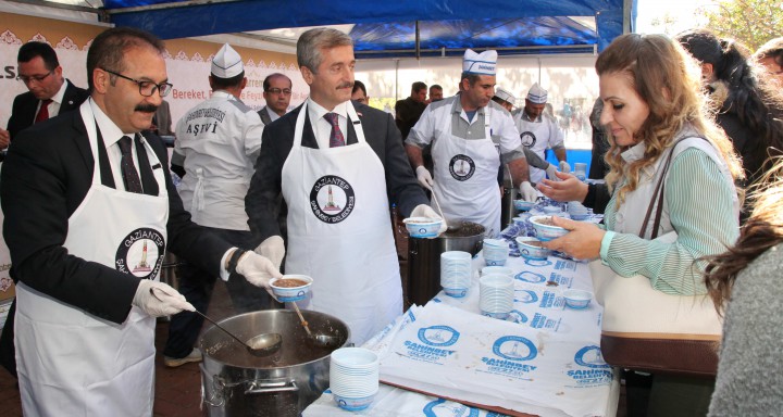 Muharrem Ayı’nda hem yas, hem hüzün, hem de bolluk bereketin simgesi olduğunu ifade eden Şahinbey Belediye Başkanı Mehmet Tahmazoğlu ise, “Şahinbey Belediyesi olarak yıllardan bu yana devam ettiriyoruz. Bu yıl da 500.000 vatandaşımıza aşure dağıtacağız. Aşuremizi parklarda, okullarda, kamu kurumlarında ve üniversitelerimizde dağıtıyoruz. Aşuremizde 17 çeşit malzeme var. Her birinin rengi ve tadı farklı ama birleştiği zaman aşure tadında farklı bir tat ortaya çıkıyor. Bizler de ülke olarak, Türk’ü, Kür’dü, Alevi’si, Sünni’siyle birlikte bir mozaik olarak Türkiye’yi oluşturuyoruz” diye konuştu.