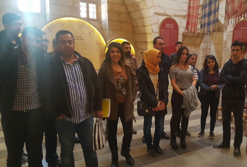 Emine Göğüş Mutfak Müzesi, Hamam Müzesi ve Mutfak Sanatları Eğitim Merkezlerini ziyaret eden öğrenciler, Öğr. Gör. Eyüp Atılgan denetiminde yetkililerden müzeler hakkında bilgi aldı.