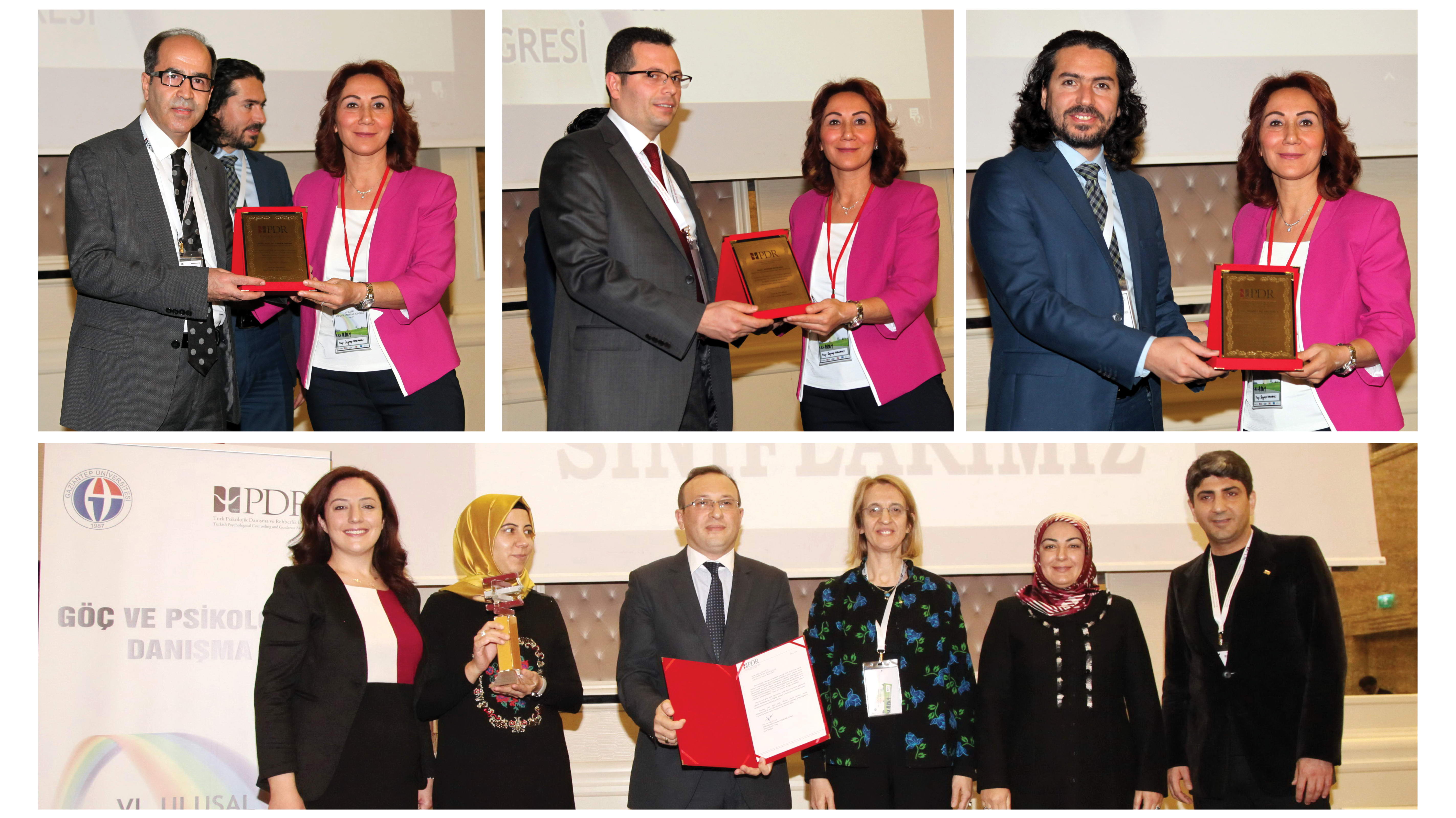 Açılış konuşmaları sonrasında Türk Psikolojik Danışma ve Rehberlik Derneği Genel Başkanı Prof. Dr. Filiz Bilge ve Rektör Prof. Dr. Ali Gür, karşılıklı olarak birbirlerine plaket verdi. Prof. Dr. Zeynep Hamamcı ayrıca, etkinliğe katkılarından dolayı GAÜN Genel Sekreteri Doç. Dr. Ayhan Doğan, Genel Sekreter Yardımcıları Burhan Akyılmaz ve Mehmet Ali Eminoğlu’ya plaket sundu. GAÜN Rektör Yardımcısı Prof. Dr. Savaş Gürsoy’un da katıldığı törende, Vize Yayıncılık adına Ferit Resuloğulları, Pegem Akademi Yayıncılık adına Sunay Karadağ, Nobel Akademik Yayıncılık adına Taner Cevizli ve Anı Yayıncılık adına Sevda Karakaya’ya Prof. Dr. Filiz Bilge tarafından plaketleri verildi. Ayrıca bu yıl altıncısı düzenlenen 2016 Empati Ödülü’nü almaya hak kazanan Eryaman Şehit Rıfat Çelik İlkokulu Müdürü Aykut Gültekin’e ilkokul adına Prof. Dr. Filiz Bilge tarafından takdim edildi.