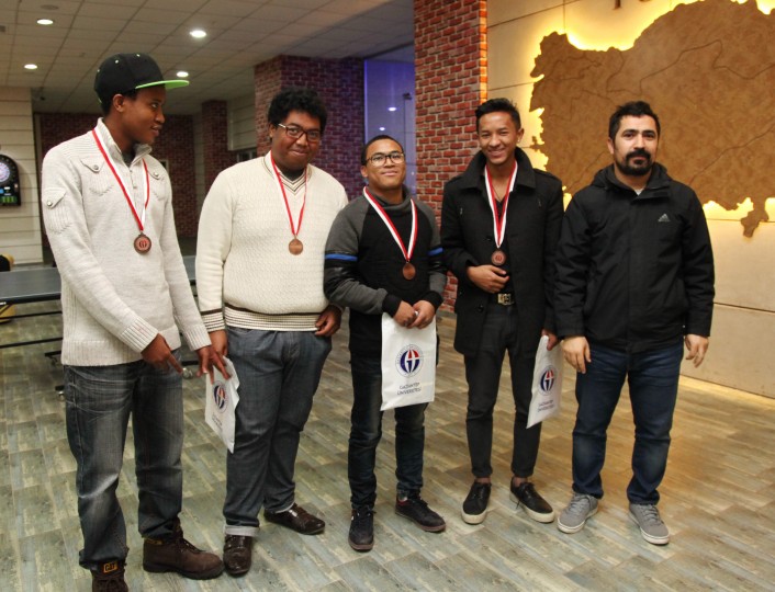 Satrançta Esmatulah Askari birinci olurken, Dovlet Zakirjanov ikinci, Vasilya Rashidova üçüncülüğü elde etti. Ödülleri GAÜN Öğr. Gör. Dr. Ayşe Y. Günal tarafından verildi. Bilardoda birinciliği kazanan Tsiry Tsilavo, ikinci olan Refy Harijaona ve üçüncülüğü elde eden Farshad Farahmand’a ise ödüllerini GAÜN Genel Sekreteri Doç. Dr. Ayhan Doğan’ın elinden aldı. Masa tenisi maçında ise Sukhrob Yadgarov birinci, Mulham Masri ikinci, Turan Kaba da üçüncü olurken ödülleri Rektör Prof. Dr. Ali Gür tarafından takdim edildi.