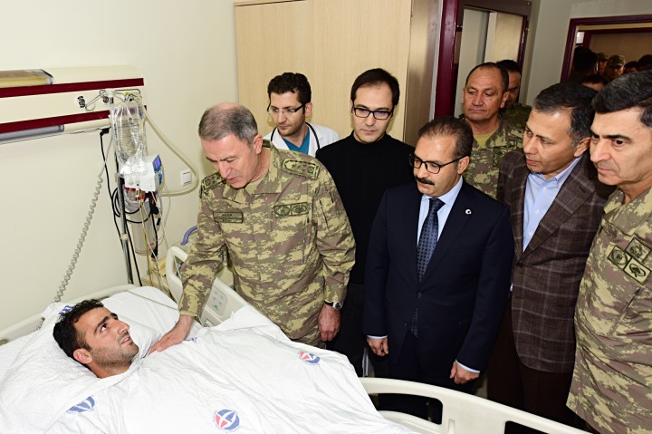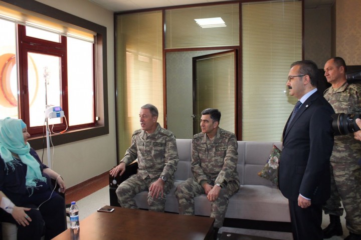 Fırat Kalkanı harekatının sürdüğü Suriye sınırındaki birlikleri denetlemek için beraberinde Kara Kuvvetleri Komutanı Orgeneral Ahmet Zeki Çolak, 2’nci Ordu Komutanı Korgeneral İsmail Metin Temel ile birlikte bölgeye gelen Genelkurmay Başkanı Orgeneral Hulusi Akar, harekatta yaralandıktan sonra tedavi için Gaziantep Üniversitesi Şahinbey Araştırma ve Uygulama Hastanesi’ne götürülen askerlere geçmiş olsun ziyaretinde bulundu. Gaziantep Valisi Ali Yerlikaya, Gaziantep Üniversitesi Rektörü Prof. Dr. Ali Gür ve Hastane Başhekimi Doç. Dr. Murat Taner Gülşen’in de eşlik ettiği ziyaret sırasında askerlerle sohbet eden Orgeneral Akar, yaralı askerlerin durumlarıyla ilgili bilgi aldı. Hem asker hem de yakınlarına da geçmiş olsun dileğinde bulunan Orgeneral Akar askerlere “Bizden bir isteğiniz var mı?” diye sordu. Yaralı askerler ise Orgeneral Akar’a tedavilerinin çok iyi yapıldığı ve kendilerine çok iyi bakıldığını ifade ederek, “Ama, biz biran önce iyileşerek cepheye, arkadaşlarımızın yanına dönerek savaşmaya devam etmek istiyoruz” dedi. Bu cevap karşısında oldukça duygulanan Orgeneral Akar, “İnşallah. Hele siz bir sağlığınıza kavuşun. Merak etmeyin silah arkadaşlarınız gereğini yapıyor” dedi.