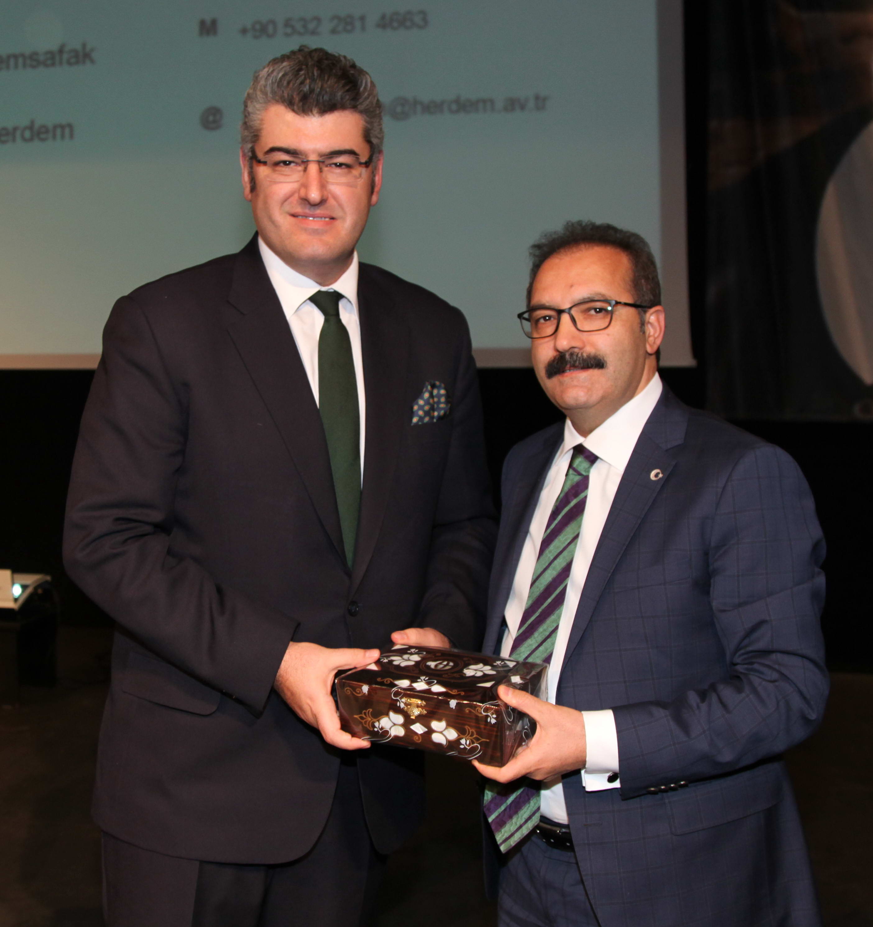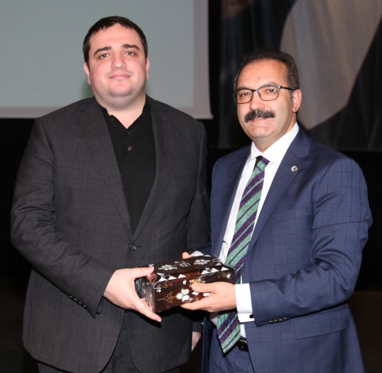 Konferansın sonunda Rektör Prof. Dr. Ali Gür tarafından Savunma Sanayi ve Güvenlik Hukuku Uzmanı Şafak Herdem ile Siber Güvenlik Uzmanı Burak Çifter’e günün anısına hediye takdim edildi.