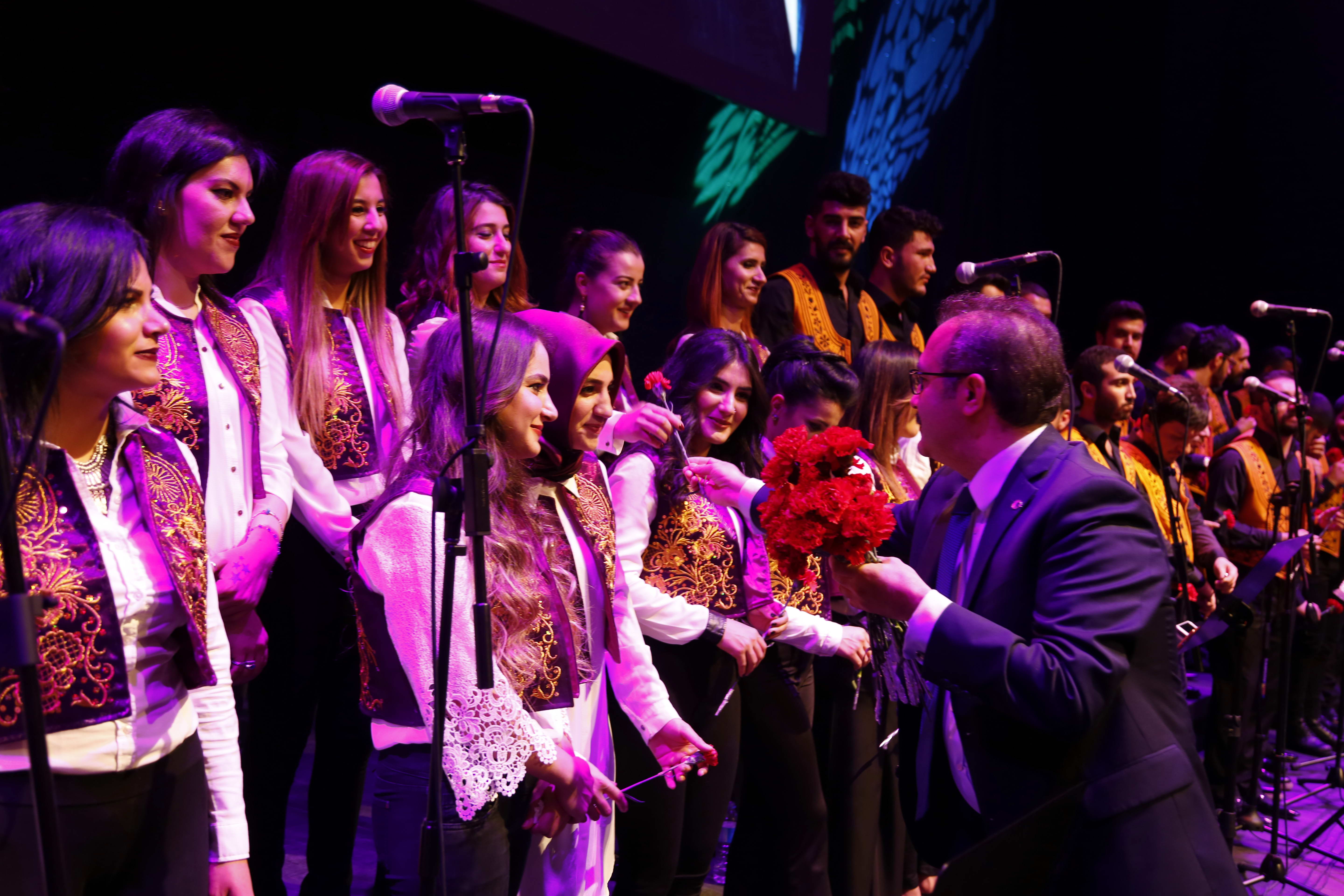 Konser öncesinde; Mehmet Bostan tarafından seslendirilen kaside ve Öğr. Gör. Zaim Başaslan’ın yazıp seslendirdiği “Bir ölür bin diriliriz” adlı şiiri büyük alkış aldı. Sanat Yönetmenliğini Öğr. Gör. Yaşar Seçkin’in yaptığı konserde; “Antep’in Harbine 11 Ay Oldu, Şu Kışlanın Kapısına, Teyyaremi Uçurdum, Evlerinde Bir ipek Halı var” gibi birbirinden güzel halk müziği eserleri seslendirildi. Türkülerin zaman zaman hikâyelerinin de anlatıldığı ve öğrenciler tarafından görsel olarak canlandırıldığı gecede seslendirilen eserler beğeniyle izlendi.