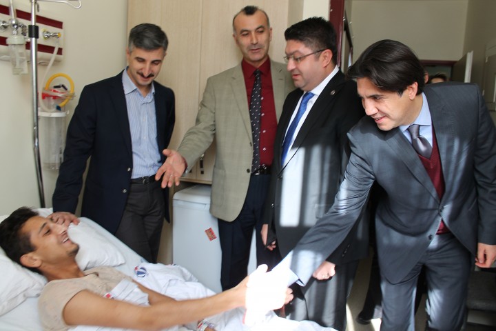 Başkan İskender Kahraman’ın yanısıra, Baro Genel Sekreteri Serdar Serçe ve Yönetim Kurulu Üyesi Göksel Öztürkmen’den oluşan heyet, Fırat Kalkanı Operasyonu’nda yaralanan askerlerimizi ziyaret ederek çiçek ve çikolata takdim etti. Şahinbey Araştırma ve Uygulama Hastanesi Başhekim Yardımcıları Doç. Dr. Suat Zengin ve Yrd. Doç. Dr. Handan Haydaroğlu Şahin, Hastane Müdürü Yemliha Yanar ile Üniversite Hukuk Müşavirliği Avukatlarından Emine Sevil’in eşlik ettiği ziyarette, Baro heyeti, yaralı askerler ve aileleriyle sohbet ederek geçmiş olsun dileklerini iletti. Ziyaretten sonra GAÜN Rektörü Prof. Dr. Ali Gür’ü de makamında ziyaret eden Gaziantep Barosu Başkanı Avukat İskender Kahraman, Şahinbey Araştırma ve Uygulama Hastanesi’nde 80’in üzerinde yaralı askerin tedavisinin yapıldığını öğrendiğini belirterek Rektör Gür’e teşekkür etti. Baro Başkanı Kahraman,” Askerlerimiz vatanımız için, bizler için evlerimizde rahat uyuyalım diye cephede mücadele verirken yaralandılar, gazi oldular. Hastanemizde tedavileri yapılıyor. Hastanemizin yaralı askerlerimizle gayet güzel bir şekilde ilgilendiklerini gördük, öğrendik. Çeşitli ameliyatlar geçirmiş gazilerimiz. Bizle gayet iyi konuştular. Şu anki sağlık durumları çok iyiydi. Kendileriyle burada birlikte olmaktan çok memnun olduk.  Her zaman da kendilerinin yanında ve arkalarında olduğumuzu ifade ettik.  Gazilerimizin emin ellerde olmasından mutlu olduk. Kendileri tekrar geçmiş olsun diyoruz” şeklinde konuştu.