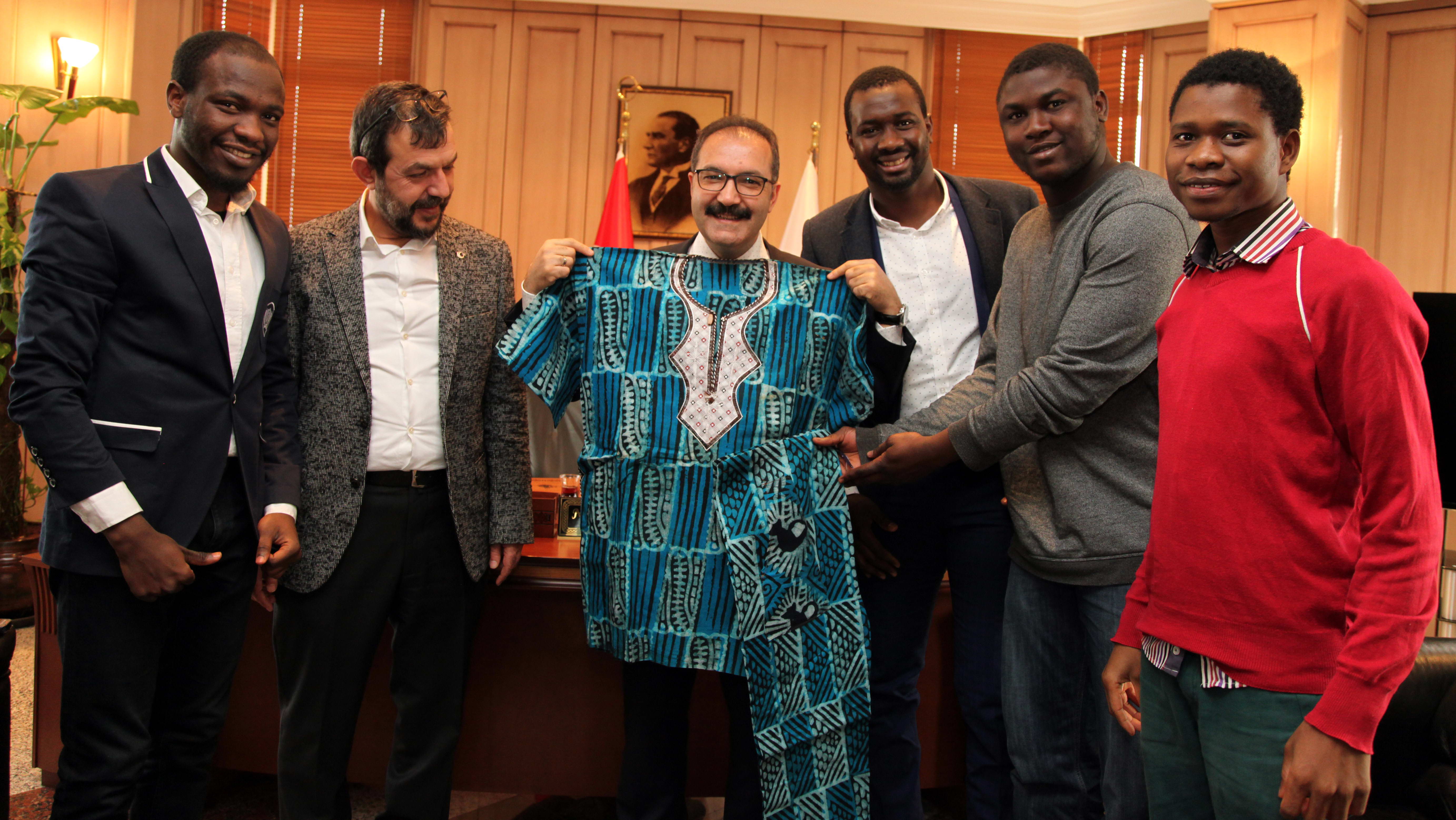 42 Afrika ülkesinden gelerek Gaziantep’te eğitimlerini sürdüren üniversite öğrencilerini temsilen kurulan Afrikalı Öğrenciler Birliği, GAÜN Rektörü Prof. Dr. Ali Gür’ü makamında ziyaret etti. Öğrencilerin yöresel kıyafet hediye ettiği Rektör Gür, “Önümüzdeki Bahar Şenlikleri’nde sizi aktif etkinliklerde görmek istiyoruz. Siz artık burada misafir değil, ev sahibisiniz. Böylelikle birbirimizi daha iyi tanıyacağız” dedi. Afrikalı Öğrenciler Birliği Başkanı Khalif Muhammed ile dernek üyeleri…