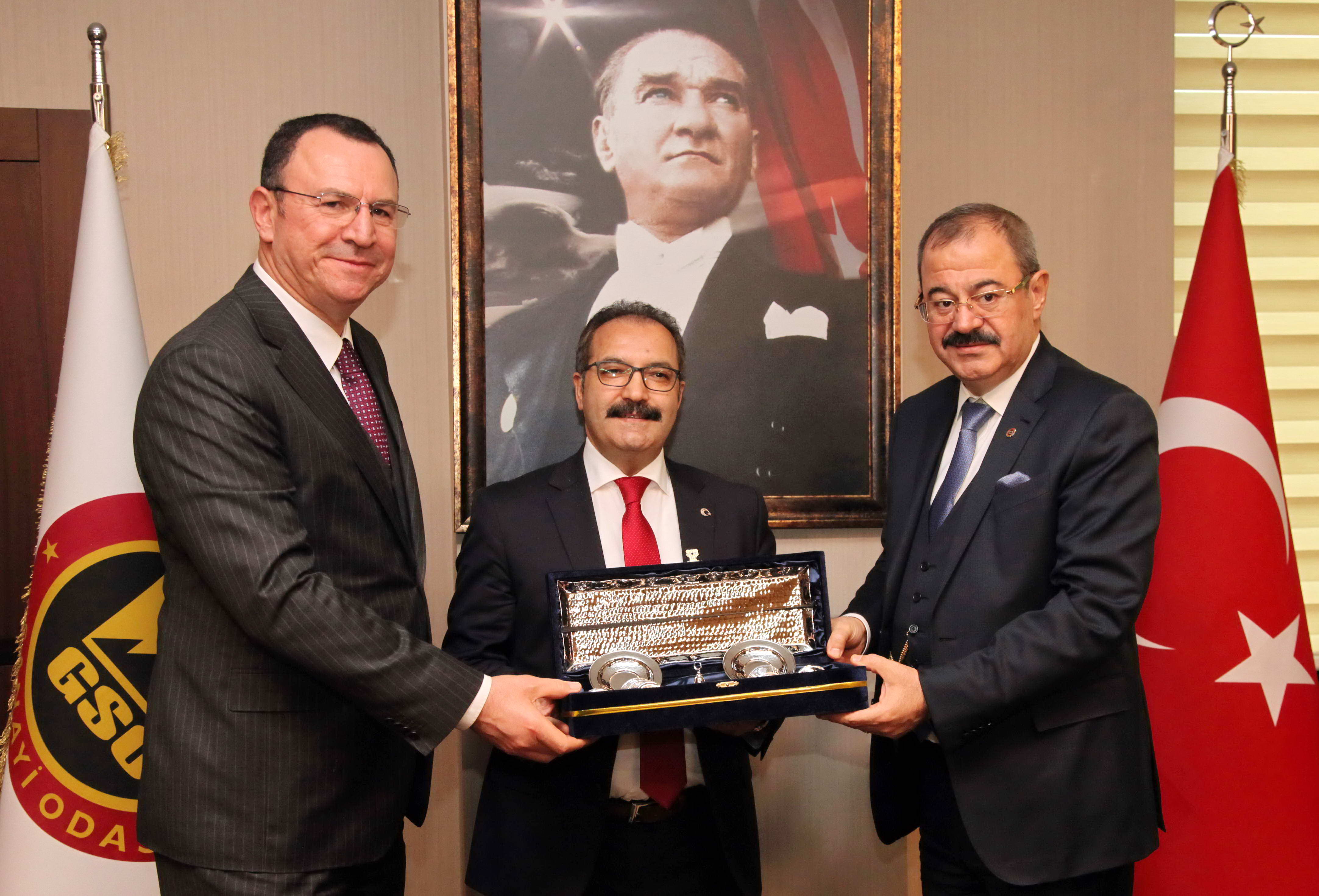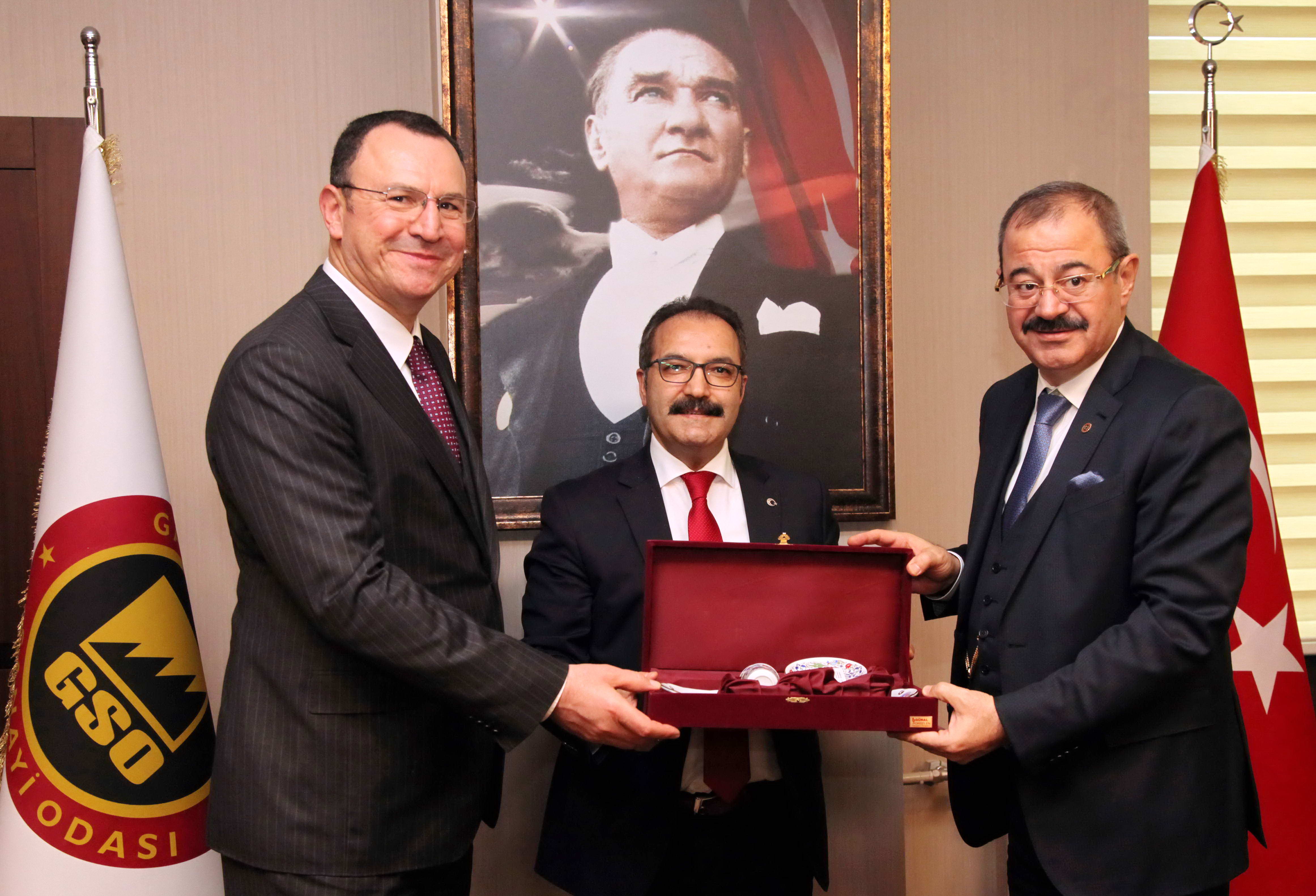 Görüşme, GSO Başkanları ve Rektör Gür’ün karşılıklı olarak birbirlerine hediye takdimi ve fotodğraf çektirilmesiyle sona erdi.