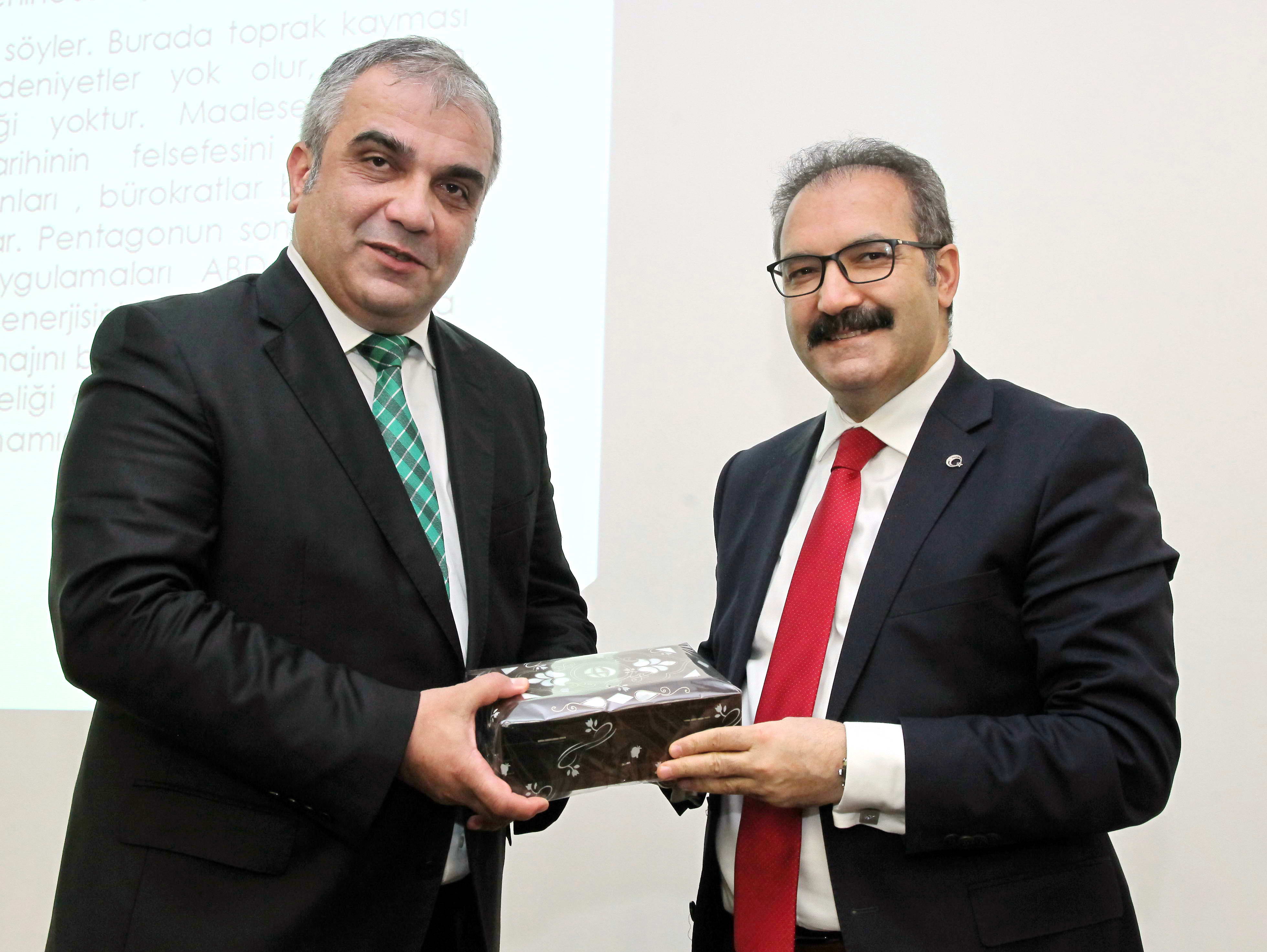 Mühendislik Fakültesi Dekanlık Binası Konferans Salonu’nda düzenlenen ve Karadeniz Teknik Üniversitesi Öğretim Üyesi ve Türk Dünyası Araştırmaları Enstitü Müdürü Prof. Dr.Kemal Üçüncü’nün “XXI. Yüzyılda Avrasya Dinamikleri ve Türk Dünyası” konulu konferansının açılış konuşmasını yapan GAÜN Rektörü Prof. Dr. Ali Gür, Türk Milleti’nin tarihte iz bırakan nadir milletlerden birisi olduğunu belirtirken, İslam ve Türk Milleti’nin birlikteliğinden doğacak gücün, dünya tarafından kabullenilemediğini vurgulayarak şöyle dedi: