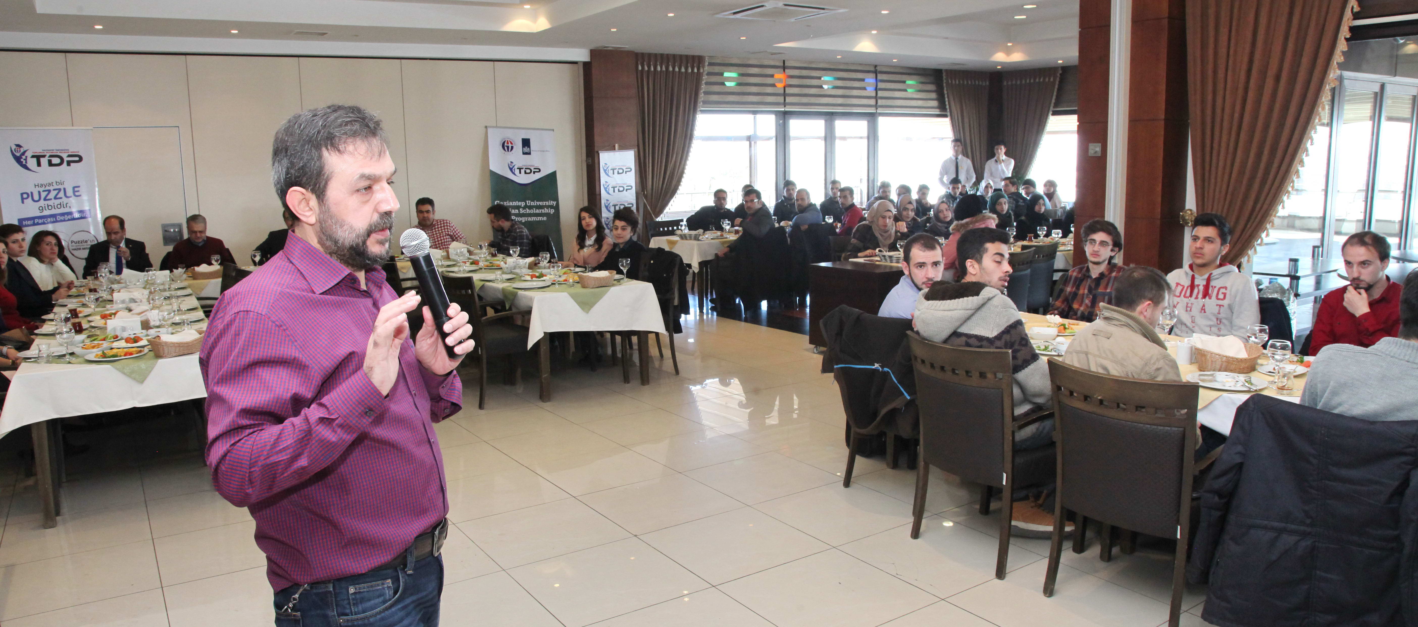 Gaziantep Üniversitesi (GAÜN) Rektörü Prof. Dr. Ali Gür, 2016 – 2017 eğitim-öğretim yılında Toplumsal Duyarlılık Projeleri (TDP) kapsamında burs imkânından faydalanan 175 Suriyeli öğrenciyle Seyirtepe Eğitim ve Uygulama Merkezinde biraraya geldi. Rektör Yardımcıları Prof. Dr. Hilmi Bayraktar, Prof. Dr. Metin Bedir ve Genel Sekreter Doç. Dr. Ayhan Doğan’ın da katıldığı kahvaltıda Rektör Prof. Dr. Ali Gür, burs imkânı sağlanan Suriyeli gençlere seslenerek, GAÜN’de eğitim gören bu gençlerin Suriye’nin yeniden inşasında ve gelişiminde önemli görevler üstleneceğini söyledi.