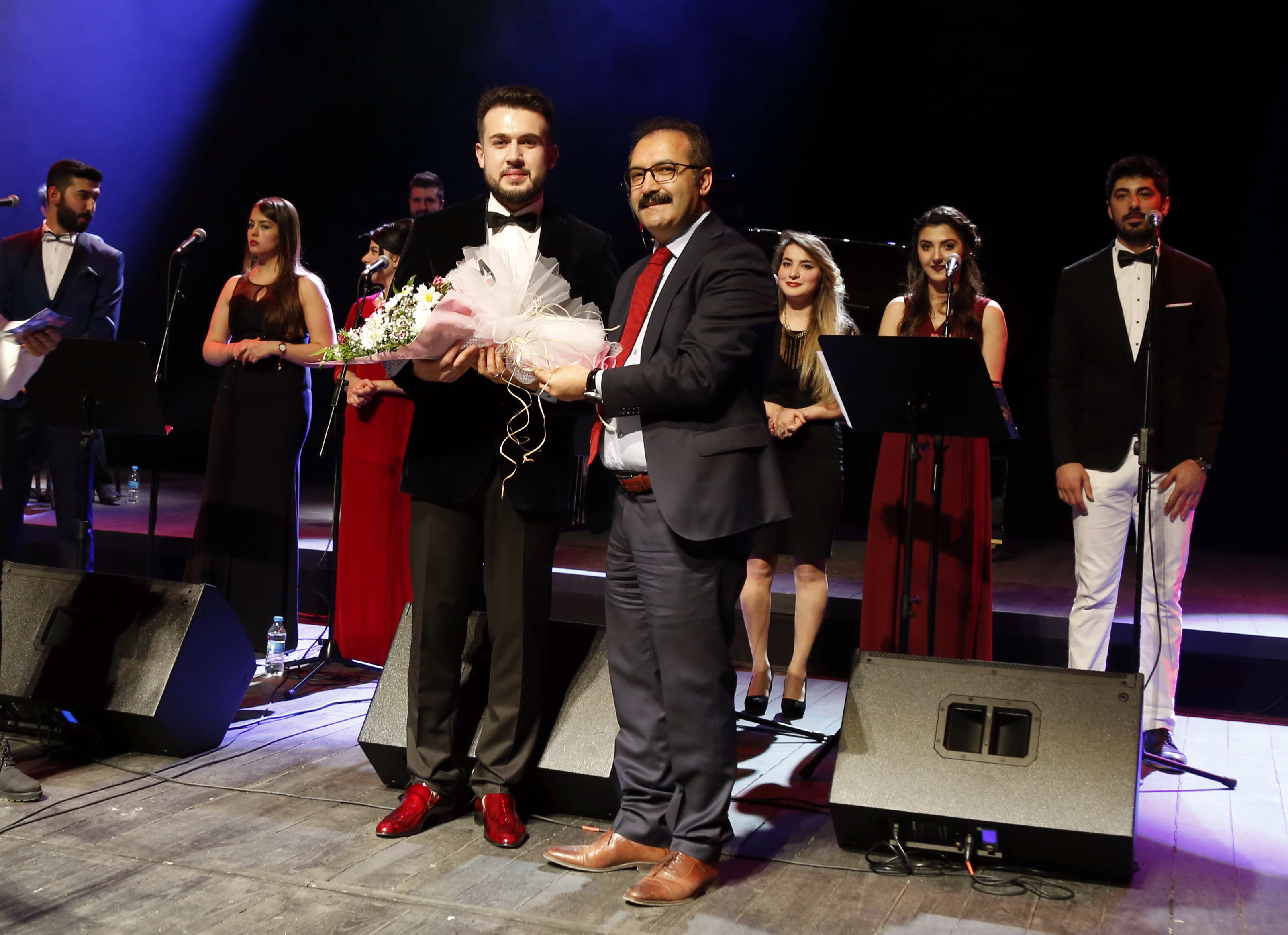 Konserin sonunda Rektör Prof. Dr. Ali Gür tarafından gecenin anısına Uzman İlker Gültekin’e çiçek takdim edildi.