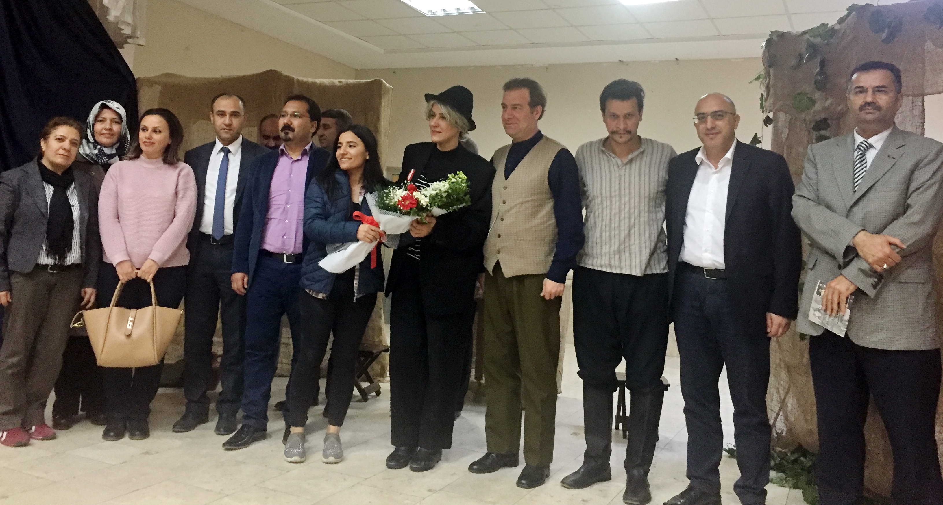 Tiyatro oyuncularından Nazlı Çığa ise İslahiye’de çok güzel bir şekilde ağırlandıklarını ve sergiledikleri oyuna gösterilen ilgiden dolayı memnun olduklarını ifade ederek teşekkür etti. İslahiye’de bu oyunu oynamaktan mutlu olduklarını ifade eden Çığa, “Biz bu tarihi oyunu birçok yerde oynamıştık. Bugün de İslâhiyeli sanatseverlerin önünde bu oyunu oynadığımız için çok mutlu olduk” dedi. Tiyatrocu Nazlı Çığa, konuşmasının sonunda salonda bulunan ve doğum günü olan bir öğrenciyi sahneye davet ederek, kendisine hediye edilen çiçek buketini öğrenciye hediye etti. Çığa’nın bu davranışı salonda bulunan öğrenciler tarafından ayakta alkışlandı.