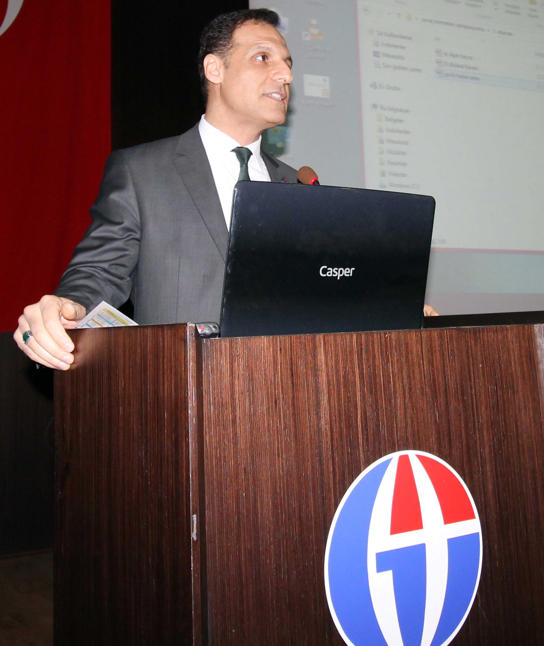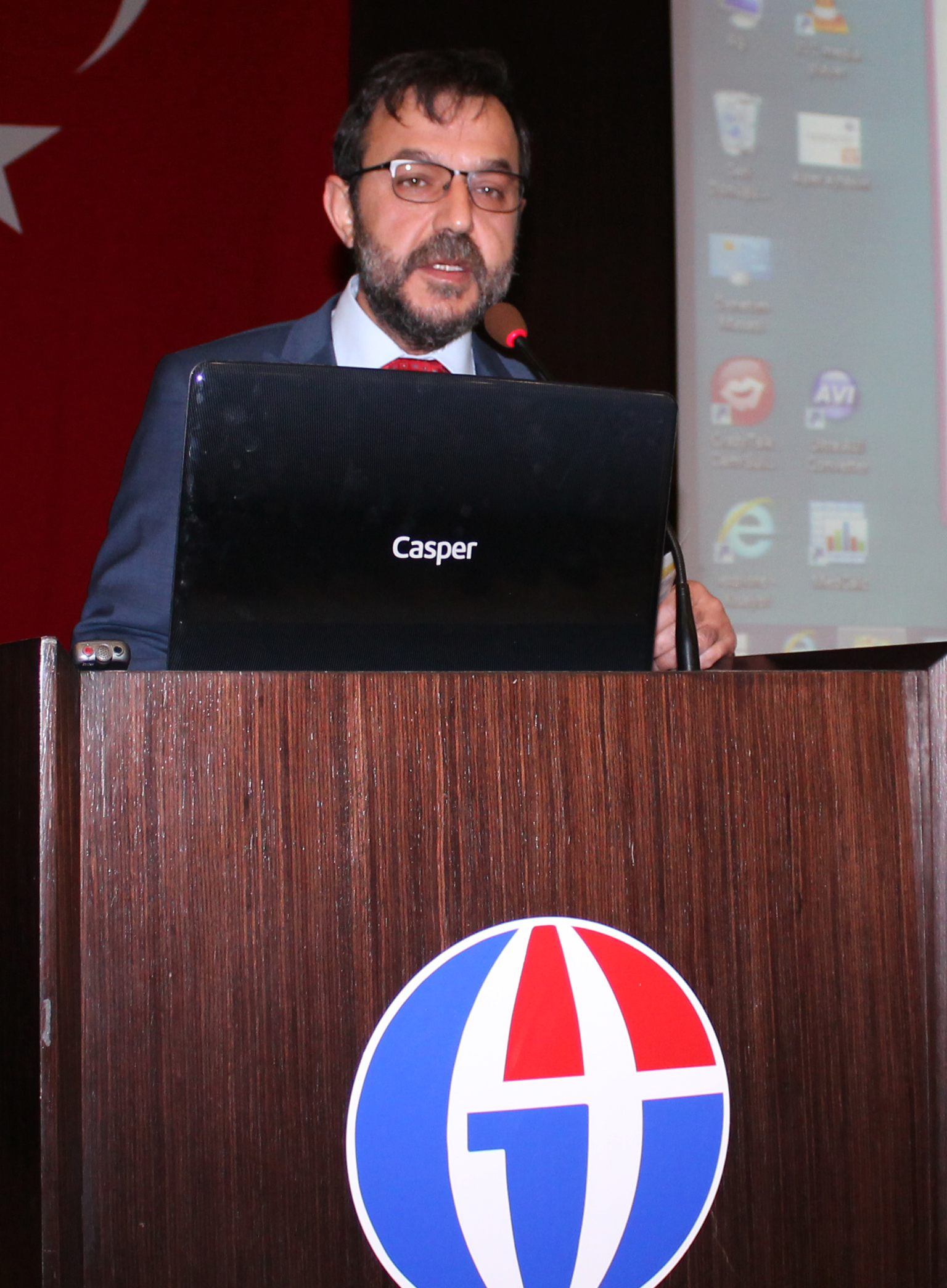 GAÜN Şahinbey Araştırma ve Uygulama Hastanesi Başhekimi Doç. Dr. Murat Taner Gülşen ise, bilginin paylaşılarak artacağına işaret ederek başladığı konuşmasının devamında, afetin deklarasyonunun hastanelerde başhekim tarafından yapıldığını vurgulayarak şöyle devam etti: “Deklarasyon yapıldıktan sonra herkes işini iyi bilmelidir. Bu nedenle sık sık afet toplantıları yaparak, herkese görevini ezberletiyoruz. Tıpta trakeostomi (cerrahi yollarla soluk borusuna giden bir delik açılması) denilen bir işlem vardır. Öğrencilik yıllarımda bir hocam bu işlemi bir tren yolculuğunda çakı ile yapmak durumunda kalmış. Ben bunu duyduğumda çok hayret etmiştim. ‘Benim başıma gelse ne yaparım?’ demiştim. Ve bir gün başıma geldi. Sağlık ocağında çalışırken boğazına fasulye kaçan 3 yaşındaki bir çocuğa trakeostomi yaptım. Bu işlemi o kadar profesyonel yaptım ki, herkes daha önce yaptınız mı dedi. Bilmelisiniz ki hayal edilen şey sizin malınızdır. Afet halinde de durum bu olmalıdır. Siz meseleye öyle bir hâkim olacaksınız ki o durumla karşılaştığınızda o işin profesyoneli gibi davranacaksınız.”