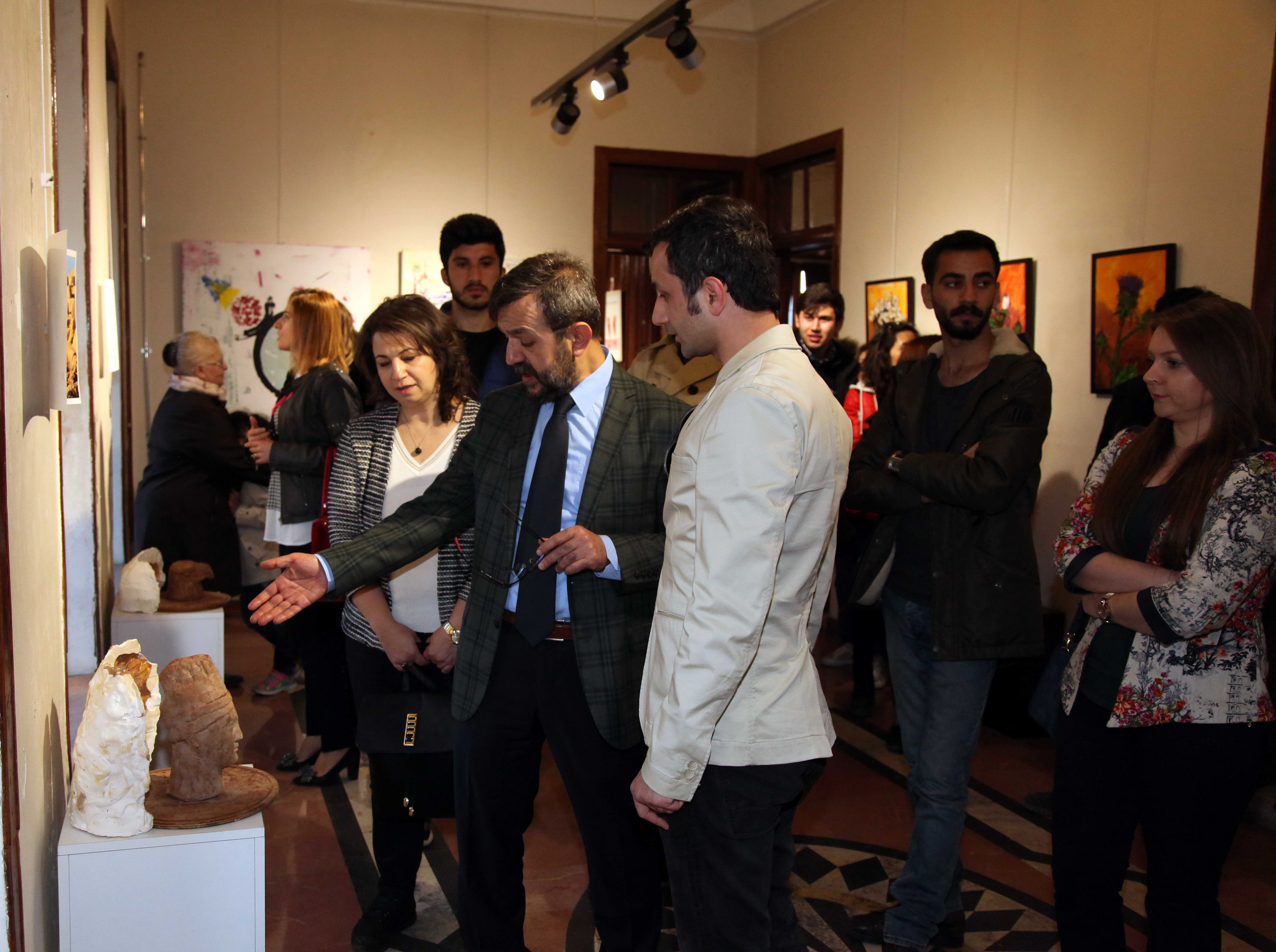 Hayatı salt, akademik çalışmaktan ibaret görmenin ne kadar yanlış olduğunu, sanatçıya, sanata değer vermeyen toplumların içine düştüğü kaosların, çıkmazların hep birlikte görüldüğünü belirten Prof. Dr. Bayraktar, “Sanat, güzeli görmek, hissetmek; güzel yapmak, güzel düşünmek. Güzel gören güzel düşünür. Kaotik bir ortamda barış ve huzur olmaz. Barış ve huzurun olması için güzeli görmek, güzeli yapmak gerekiyor. Bu bağlamda sanatçılarımıza yeteri kadar değer verirsek güzel ortaya çıkar. Sanatçı olmak için farklı bir ruh hali, özgünlük lazım. Böyle sergiler bir kıstas, değerlendirme yapmamızı sanatı, sanatçıyı ve akademik çalışmayı ayırt etmemizi de sağlıyor. Bu gibi sergilerin yapılması hem Üniversitemiz açısından ayrı bir onur vesilesi hem de sanatçılarımız açısından da yaptıklarını sergileme fırsatı. Bu gibi sergilerin devamını destekliyoruz” şeklinde konuştu. Öğretim Elemanları Karma Sergisi Cenani Konağı Kültür ve Sanat Merkezinde 03 – 14 Nisan 2017 tarihlerinde gezilebilecek.