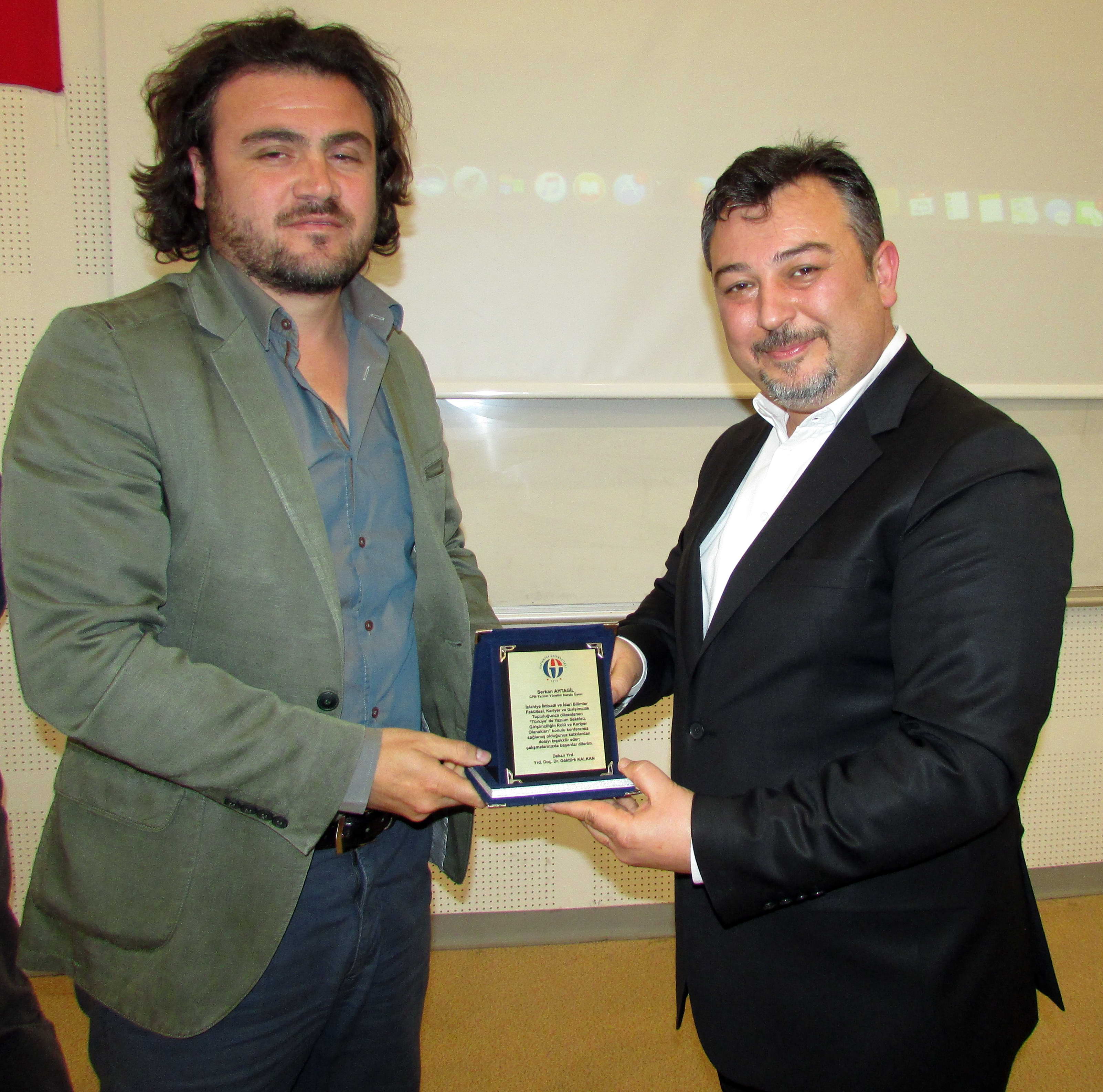 Konferans sonunda öğrencilerden gelen soruları cevaplayan Ahtagil’e Kariyer ve Girişimcilik Topluluğu öğrencileri tarafından çiçek verilirken, İslahiye İİBF Dekan Yardımcısı Yrd. Doç. Dr. Göktürk Kalkan tarafından da plaket takdim edildi.