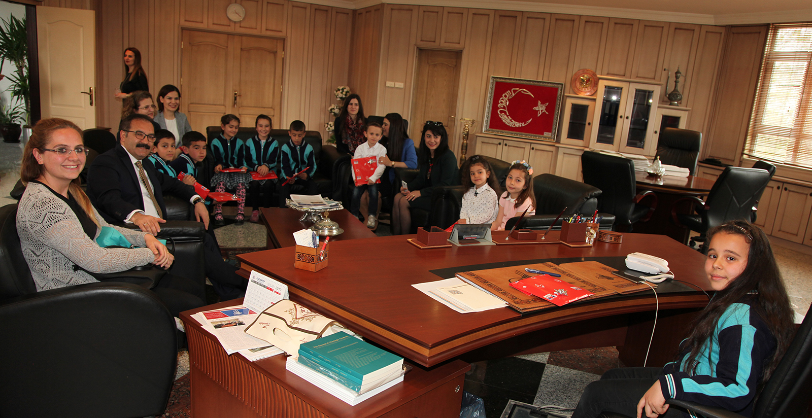 Çocuklar GAÜN Rektörü Gür’ün koltuğunda