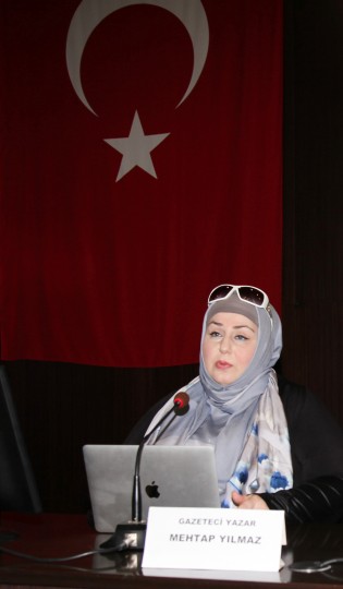 Konuşmasına salonu dolduran dinleyicilere, “Evinize, yaşadığınız yere bomba düştü diyelim. Çığlıklar yükselirken, her taraf mahşer yeri. Önce kimi kurtarırsınız? Eşinizi mi, oğlunuzu, Babanızı, annenizi mi?” şeklinde empati yaparak başlayan Gazeteci Yazar Mehtap Yılmaz, daha sonra şunları söyledi: “Bu duygular içinde ölümden kaçan Aylan Bebek sayfalarımıza, medyanın, ekranların sayfalarına vurdu. Ege kıyılarına değil sadece, kamuoyunun vicdanlarına vurdu. Ümran Bebek kaldığı için, Aylan Bebek öldüğü için vicdanlara vurdu” diye konuştu. Konuşmasının devamında, Avrupa Birliği’nin özellikle altyapı ve yeraltı kaynakları için Ortadoğu’ya üşüştüğünü ve bu birliğin doymaz iştahının sonucu olarak orada binlerce çocuğun yaşamını yitirdiğinin altını çizen Yılmaz, şöyle devam etti. “İlla da o çocukların trajedisini anlamamız için kıyıya vurmasını beklememiz gerekmiyordu. İlla da Ümran Bebek gibi medya, sosyal medya fenomeni olduğu için hüzünlenmemiz gerekmiyordu. Orda göçük altında da pek çok bebek öldü. Zehirli gazlarla, nefes nefese boğularak da pek çok çocuk öldü. Hem denizlerde boğuldular, hem zehirli gazlarla can verdiler. İlla da bir çocuğun trajedisini görebilmesi için dünyanın, Aylan Bebeğin kıyılar vurması gerekti. O fotoğraf, yani Aylan’ın kumsalda uyuduğu fotoğraf, kısmen de olsa dünya kamuoyunun vicdanını uyandırdı. Ama, onun ötesinde varil bombalarıyla, misket bombalarıyla, zehirli gazlarla savaş suçu olarak kabul edilen bazı silahların kullanılması sonucu pek çok çocuk can verdi.”