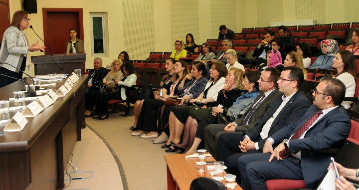 Büyükşehir Belediye Başkanı Fatma Şahin ise konuşmasında, özellikle kadın ve erkek üzerindeki adaletin tesis edildiği bir kalkınma modelinin oluştuğu, meseleye daha teknik, daha bilimsel, dünyaya entegre ederek eylem ve söylem birliği içerisinde bakıldığında ülkemizin nerede olduğunun önemli olduğunu vurgulayan Başkan Şahin sözlerinin devamında şöyle dedi: “Bu pencereden bakıldığında, bugün neredeyiz? Ülkemizde, şehrimizde neredeyiz? Dünya ne yapıyor, üniversitemizde daha neler yapılması gerekiyor? Bu meseleler çok önemli çünkü artık kadınsız demokrasi olmayacağını, kalkınma olmayacağını hepimiz biliyoruz. Bilim ve teknoloji çağının yaşandığı kısaca “3k” devrimi dediğimiz kas, kafa döneminin başladığı artık kafanın, aklın, bilim ve teknolojinin konuşulduğu rekabetin bunun üzerinde konulduğu bir dünya düzeninde toplumun yarısının aklını, potansiyelini, ehliyetini, liyakatini, kapasitesini yok saydığımızda hiçbir hedefe ulaşamayız. Dolayısıyla kadın-erkek eşitliği meselesi hak ve adalet olduğu kadar bir kalkınma meselesi, bir hedefe ulaşma meselesi olarak görüyoruz. Özellikle Cumhuriyetimizin 100.yılında dünyanın onuncu ekonomisi olma hedefi hepimiz için toplumdaki her bir fert için çok kıymetli. Bu hedefe ulaşabilmemiz için yapmamız gerekenler içinde en temel mesele de kadın hakları meselesini iyi bir şekilde topluma özümsetmek. Bu çalıştay da bizim için yol haritası olacak.”