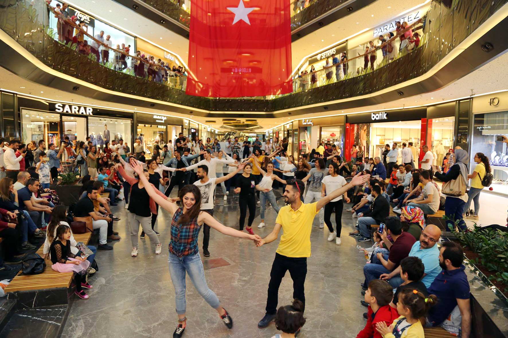 AVM’de flash mob uygulamasıyla; “Entarisi ala benziyor, Suda balık ve Yedikule” eserleri seslendiren öğrencilere aynı zamanda GAÜN Türk Müziği Devlet Konservatuarı Türk Halk Oyunları Bölümü öğrencileri de modern dansları ile eşlik etti. Etkinliği hazırlayan GAÜN Türk Müziği Devlet Konservatuarı Öğr. Gör. Hamdi Hikmet Geçin, etkinliğin hazırlanmasında destek veren Rektör Prof. Dr. Ali Gür’e, Türk Halk Oyunlarını gösteriye hazırlayan Konservatuar Müdürü Yrd. Doç. Dr. Neslihan Ertural’a teşekkür ederek, konservatuarın ve üniversitenin halkla ve şehirle buluşmasının güzel bir örneğini sunduklarını ifade etti.