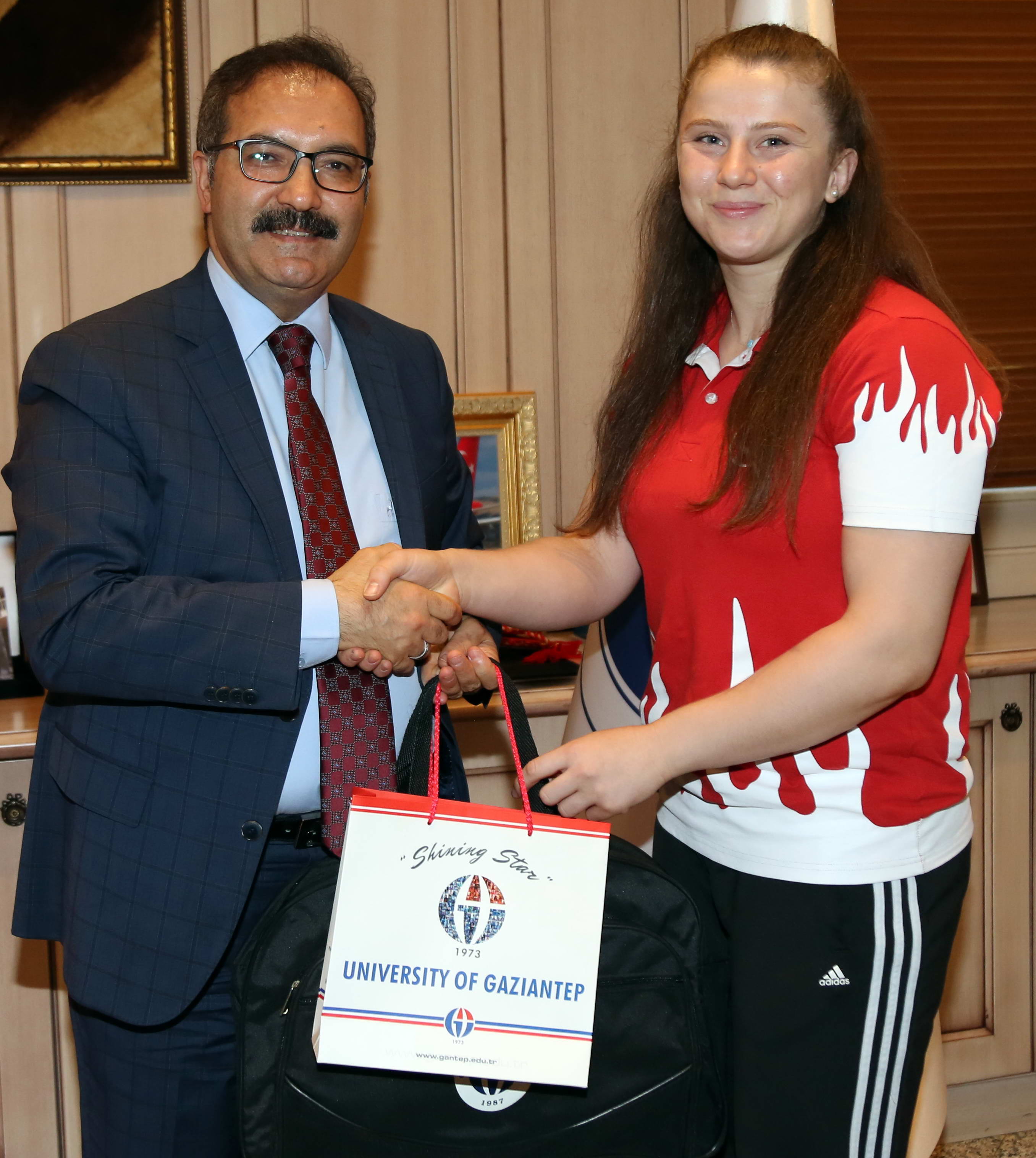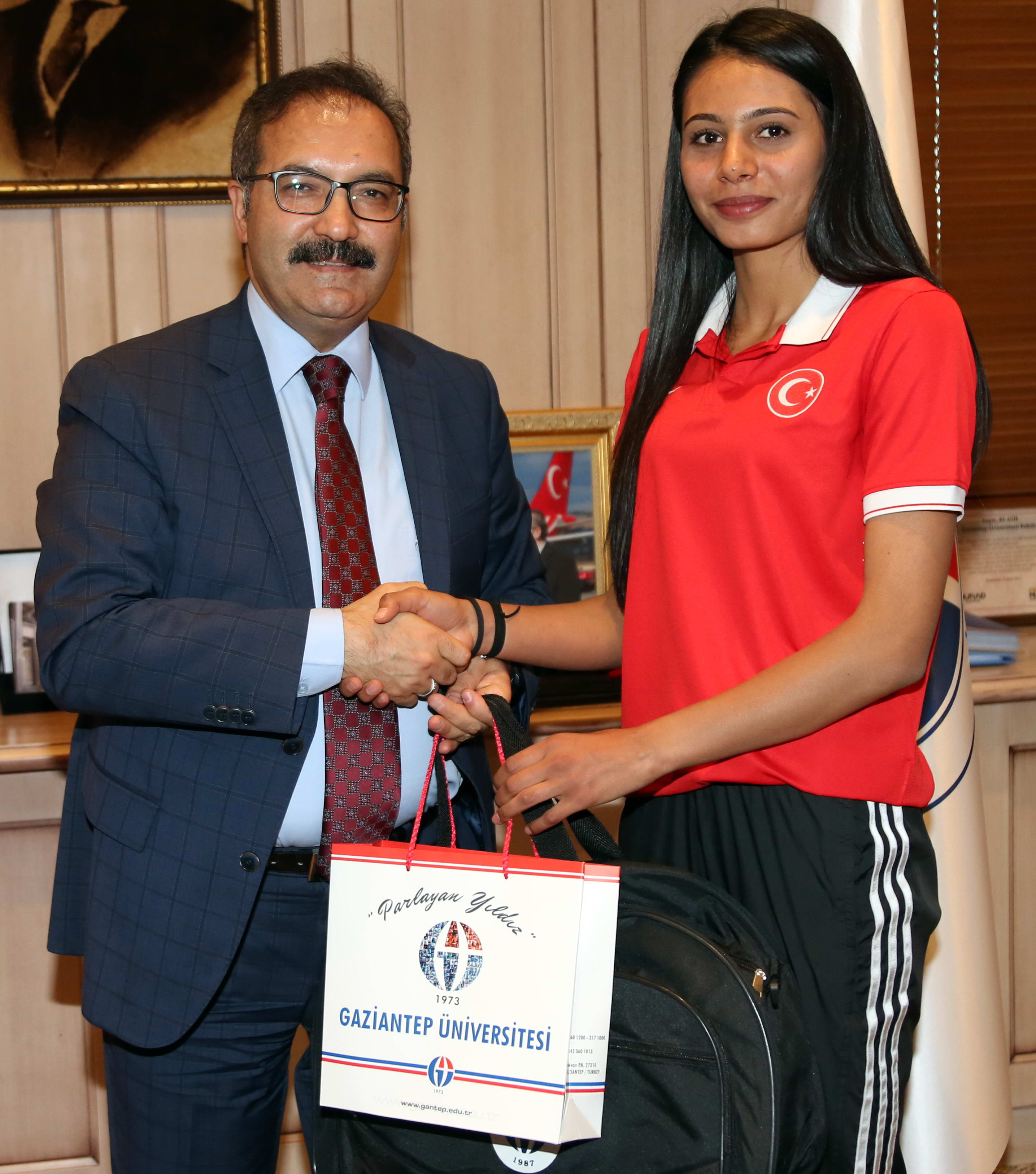 GAÜN Rektörü Prof. Dr. Ali Gür, çeşitli spor dallarında Türkiye ve Dünya derecesi yapan sporcuları kabul ederek kutladı.