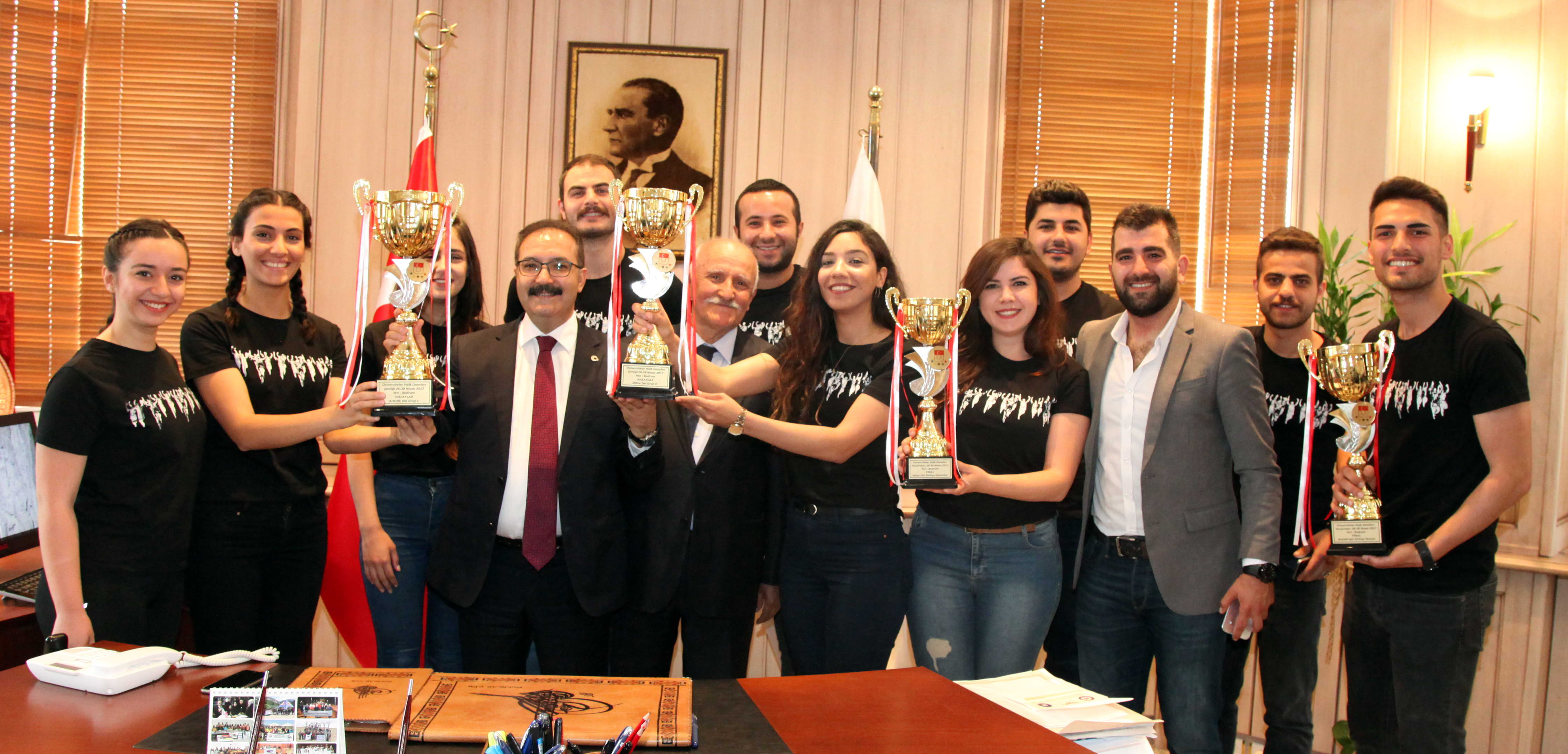 Muğla’da yapılan Üniversiteler Arası Halk Oyunları Yarışması’nda Türkiye ikincisi olan GAÜN Halk Oyunları Ekibi, ziyaret ettikleri Rektör Gür’e kupalarını sundu. Hocaları Kürşat Korkmaz ve Murat Karataş ile birlikte ekip arkadaşları adına GAÜN Rektörü Prof. Dr. Ali Gür’ü makamında ziyaret eden halk oyunları ekibi öğrencilerinden Ahmet Tuzcu, Hacer Budamacı, Mustafa Ağbal, Melek Doğan, Ömer Mert Yavuz, Dilara Karadeniz, Yunus Aykan, Mehmet…