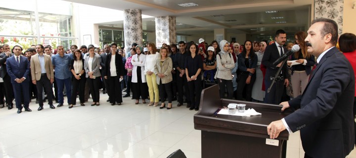 GAÜN Sağlık Hizmetleri Meslek Yüksekokulu Fuaye Alanında gerçekleştirilen törende; Bölge Kan Merkezi Müdürü Dr. Serdal Ucuz, GAÜN Rektörü Prof. Dr. Ali Gür’e teşekkür plaketi takdim etti. Rektör Yardımcısı Prof. Dr. Metin Bedir, Genel Sekreter Yardımcıları Nuh Okumuş ve Mehmet Ali Eminoğlu’nun katıldığı etkinlikte çok sayıda öğrenci ve personel kan bağışı yaptı.