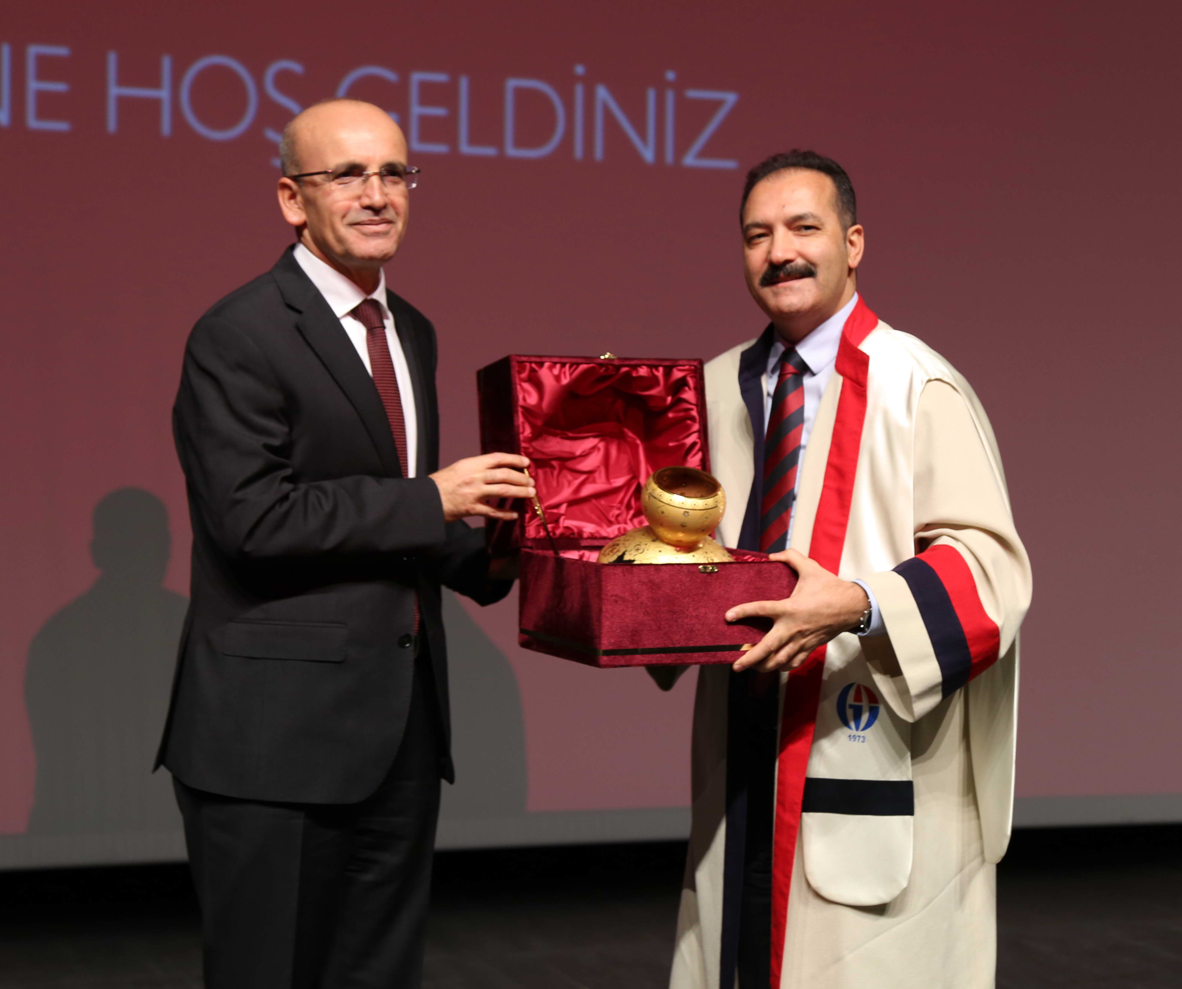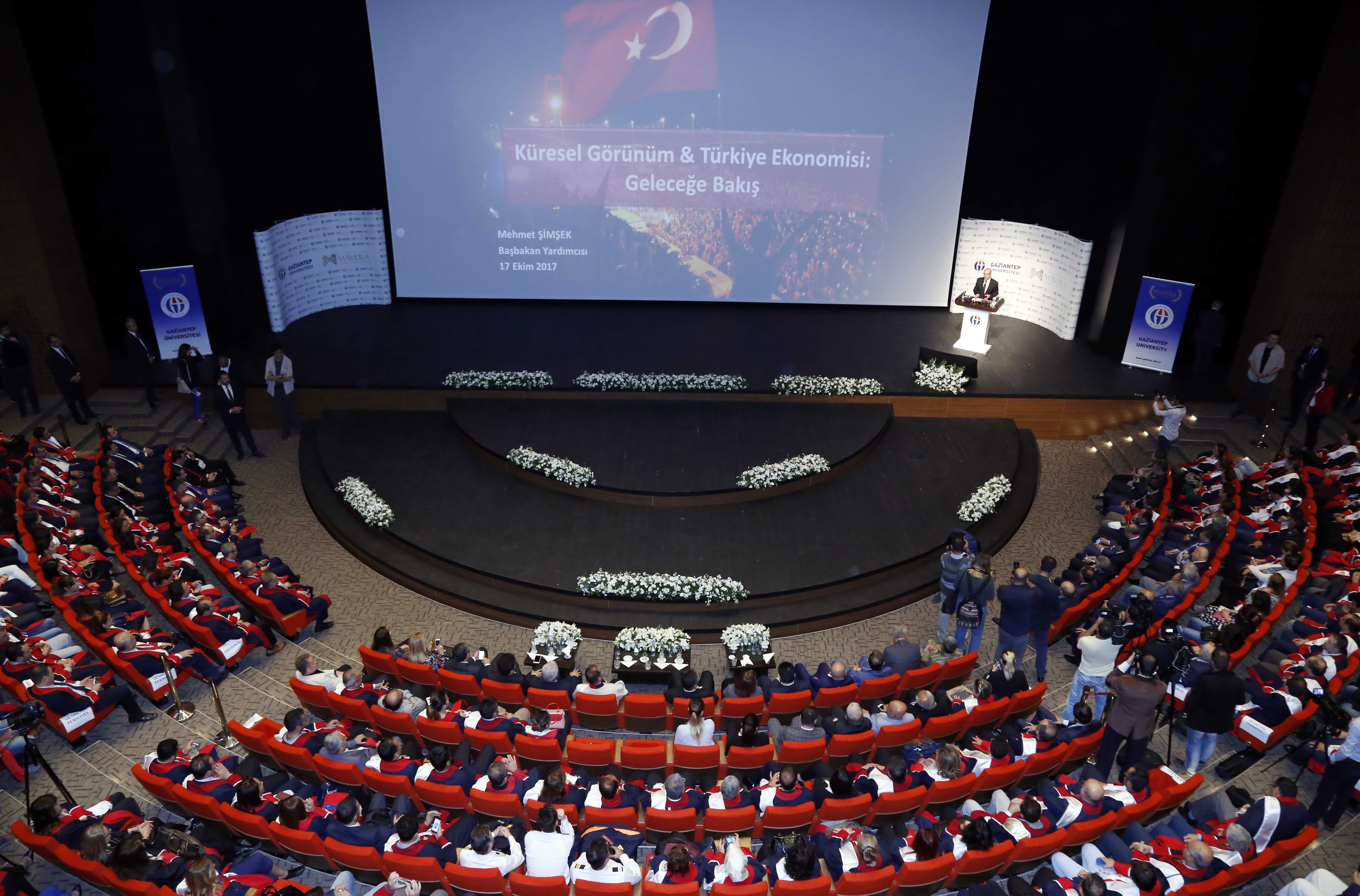 Gaziantep Üniversitesi 2017 – 2018 Akademik Yılı Resmi Açılış Töreni’nde “Küresel Görünüm ile Türkiye Ekonomisi konulu açılış dersi veren Başbakan Yardımcısı Mehmet Şimşek, tüm göstergelerin Türkiye’nin büyüdüğünü gösterdiğini belirterek, “Ülkemizin hedeflerine ulaşmasında üniversitelere de büyük görev düşüyor. Bunun için üniversitelerimiz ve sanayi asla ve asla kopuk olmamalı” dedi.