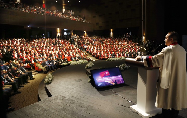 Gaziantep Üniversitesi’nin kurumsal kimliğiyle, sadece coğrafyasında değil, Türkiye ve Dünya’da öncü olmaya aday ve aynı zamanda öncü bir üniversite olduğu vurgusunu yapan Rektör Prof. Dr. Gür, sözlerinin devamında ise şunları söyledi: “Tabiî ki herkes farklı düşüncede olacak. Homojen bir düşünce arzusu Allah’ın yaratılış kurallarına aykırıdır zaten. Farklı düşünceleri harmanlama, farklı düşüncelerden potansiyel enerjiyi dinamik enerjiye döndürmek istiyoruz. Asla homojen bir üniversite oluşturma sevdamız olmadı olmayacak da zaten. Ama biz bunu yaparken belli kriterlere uymak zorundayız. Devletimizin ve milletimizin hassasiyetleri doğrultusunda genel evrensel kurallar çerçevesinde vatana ihanet etmemek, bayrağına saygıda kusur etmemek, inançlara saygılı olmak, ezan sevdasından vazgeçmemek ve vatan bütünlüğünü korumak kaydıyla ne düşünürseniz düşünün. Bu bizim üniversitemizin zenginliğidir, potansiyel enerjisidir. Bu konuda aşağı yukarı geçtiğimiz süreçleri hepimiz biliyoruz. Elbette ki bir yandan devletimizin hassasiyetleri doğrultusunda ihanet şebekelerine karşı gerekli tedbirler alınıp aramalar yapılırken diğer taraftan da asıl rolümüz olan eğitimi asla unutmadık. Hedefimiz kaliteli, kurumsallaşmış bir üniversite. Allah’a çok şükür büyük Avrupa Birliği Projeleri yapıyoruz. Erasmus’ta Ankara, İstanbul, İzmir, Bursa’dan sonra Avrupa Birliği projelerinde en fazla kaliteli proje üretip, pay alan şehir Gaziantep ve üniversitemizdir. Tıp dışı alandaki İntörnlük Gaziantep Üniversitesi’nin tescilli bir markasıdır. Şu anda YÖK Başkanlığımız ve Bilim Sanayi ve Teknoloji Bakanlığımızla birlikte 70 üniversite bu programa geçmek için intörnlük programı güncellemek için yola koyuldular. Biz bu tohumu attık ve yakın zamanda yeşerecek. Bir başka özelliğimiz hani son zamanda çıktıya meslek yüksekokulları gerçek anlamına kavuşabilmesi için sanayinin içerisinde yer almalı ve sanayinin içerisinde meslek yüksekokulları kurmalıyız diye tavsiye kararı çıktı. Biz zaten bunu yaklaşık olarak 9 yıldır yapıyoruz. Diğer taraftan Türkiye’de üç dilde eğitim yapan Türkçe, İngilizce ve Arapça tek üniversiteyiz ve bu eğitim programı yaparken de gerek devletimizin gerek kurumlarımızın büyük gayretleriyle eksikliklerimize rağmen bunu başarıyla taşımak istiyoruz. Çünkü bizim burada yetiştireceğimiz öğrencilerimiz sadece Türkiye’de değil gittikleri ülkelerde de öncü bayraklardan olacaklar ve bizim misyonumuzu temsil edecekler.”