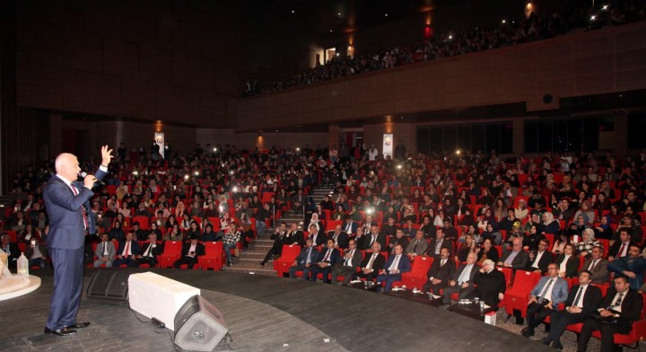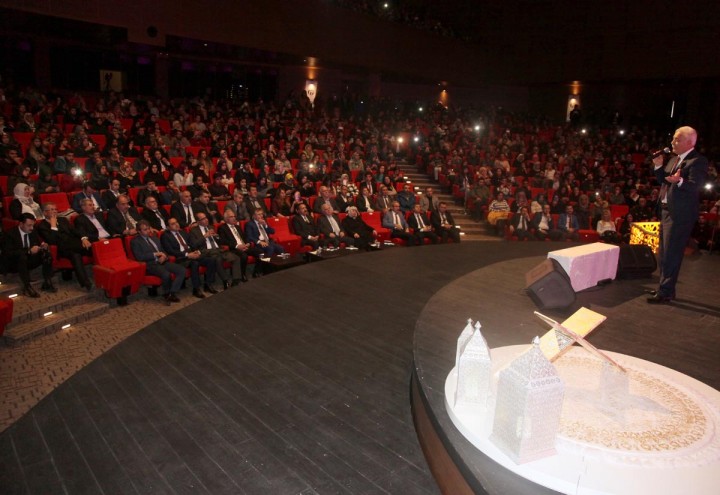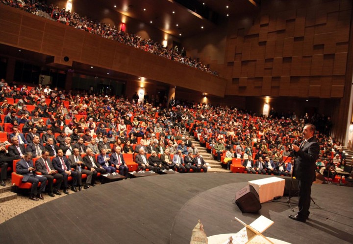 Peygamberimizin hayatı boyunca tüm imkanları kullanma şansı olmasına rağmen, kendisine mütevazı bir yaşam seçtiğine vurgu yaptığını belirtiği konuşmasının devamında şöyle dedi: “Mekke’nin fethinden sonra Medine’ye döndü Resul Allah. Herkes, büyük evler yaptırıp, orda yaşamaya devam edeceğini düşünüyordu. Ama, öyle olmadı. O, hayatı boyunca üstü hurma dallarıyla örtülü bir evde kaldı. Yağmur yağınca içeri düşerdi. Bu şu demek değil gençler, Müslüman yağmur alan evde yaşasın. Yok, öyle bir şey. Müslüman; bir lokma, bir hırka ile yaşasın. Yok öyle bir şey. Tam aksine Müslüman çok güçlü olacak. Müslüman, tüm imkanlara sahip olacak. En temiz yerde yaşayacak, en temiz imkanlarla etrafına bakmak koşuluyla. Bize yıllarca ‘Okumaya gerek yok, okumanın faydası yok’ dediler. Başkaları okudular, yanlış şeyler yazdılar. Onun için Müslüman yeniden kendini tartmak zorunda. İmkanlar neyse bütün imkanları kullanacaksınız. Helaller belli, haramlar belli. Haram dairesine girmemek koşuluyla, helal dairesindeki her şey size mubahtır. Hz. Peygamber bunu öğretti bize. Bulduğunda imkanlardan istifade ederdi. Mütevazi Muhammed olarak yaşamaya devam etti. Allah onunla üç yerde buluşmayı nasip eylesin. Öyle diyor çünkü. ‘Beni üç yerde arayın; Sırat Köprüsü’nün başında, terazinin başında, Kevser Havuzu’nun başında. Allah hepimize oralarda buluşmayı nasip etsin Allah’ın Resulu ile.”