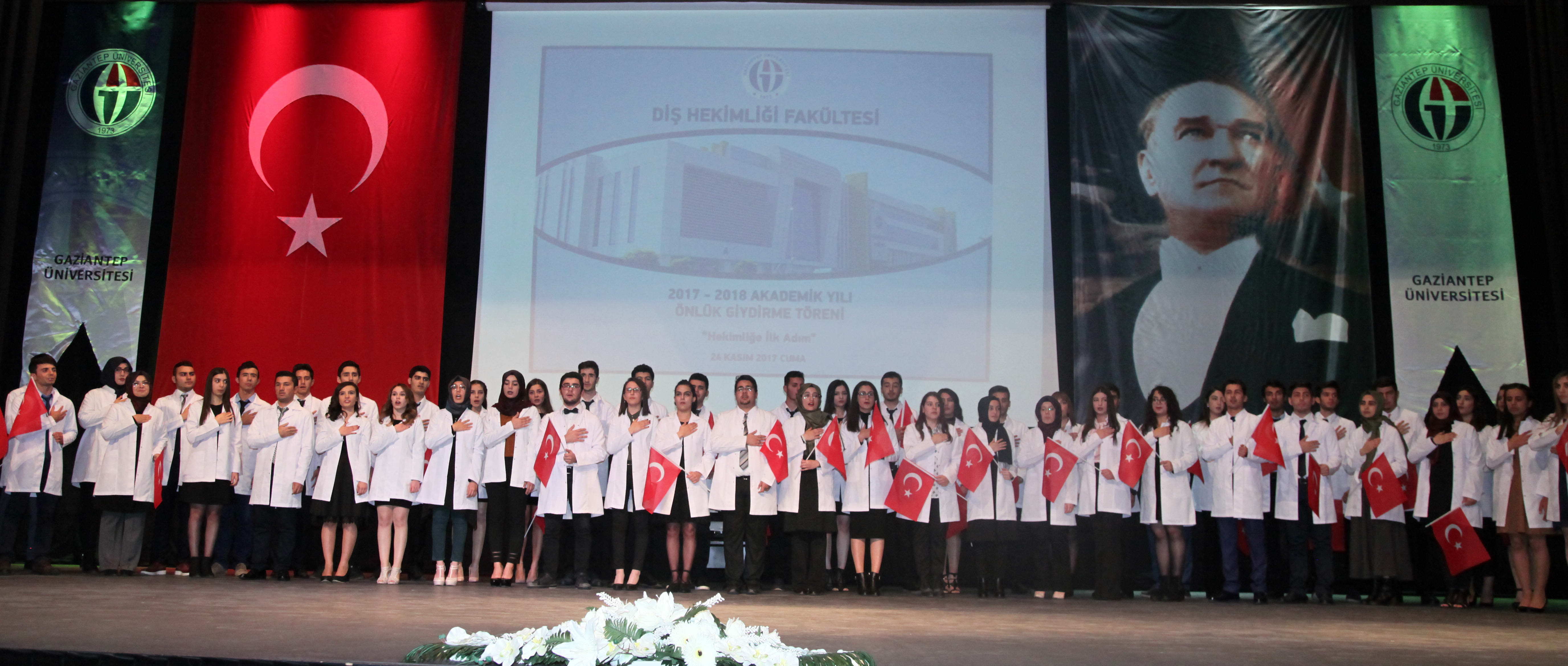 Gaziantep Üniversitesi (GAÜN) Diş Hekimliği Fakültesi tarafından GAÜN Atatürk Kültür Sahnesi’nde düzenlenen “Beyaz Önlük Giyme” töreninde 74 öğrenci beyaz önlük giyerek, klinik öncesi laboratuar eğitimlerine başladı.