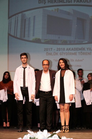 Konuşmaların sonrasında hekimliğe ilk adımı atan 74 öğrenciye Rektör Prof. Dr. Ali Gür, Rektör Yardımcısı Prof. Dr. Avni Gökalp, Diş Hekimliği Fakültesi Dekanı Prof. Dr. Kamile Erciyas, Genel Sekreter Doç. Dr. Ayhan Doğan, Şahinbey Araştırma ve Uygulama Hastanesi Başhekimi Doç. Dr. Suat Zengin, Diş Hekimleri Odası Başkanı Hasan Karabay ve öğretim elemanları tarafından beyaz önlükleri giydirildi. Törende; Diş hekimi Serdar Sıralay tarafından stand-up gösterisi sunulurken; Diş Hekimleri Odası Başkanı Hasan Karabay da öğrencilere bayrak dağıttı.