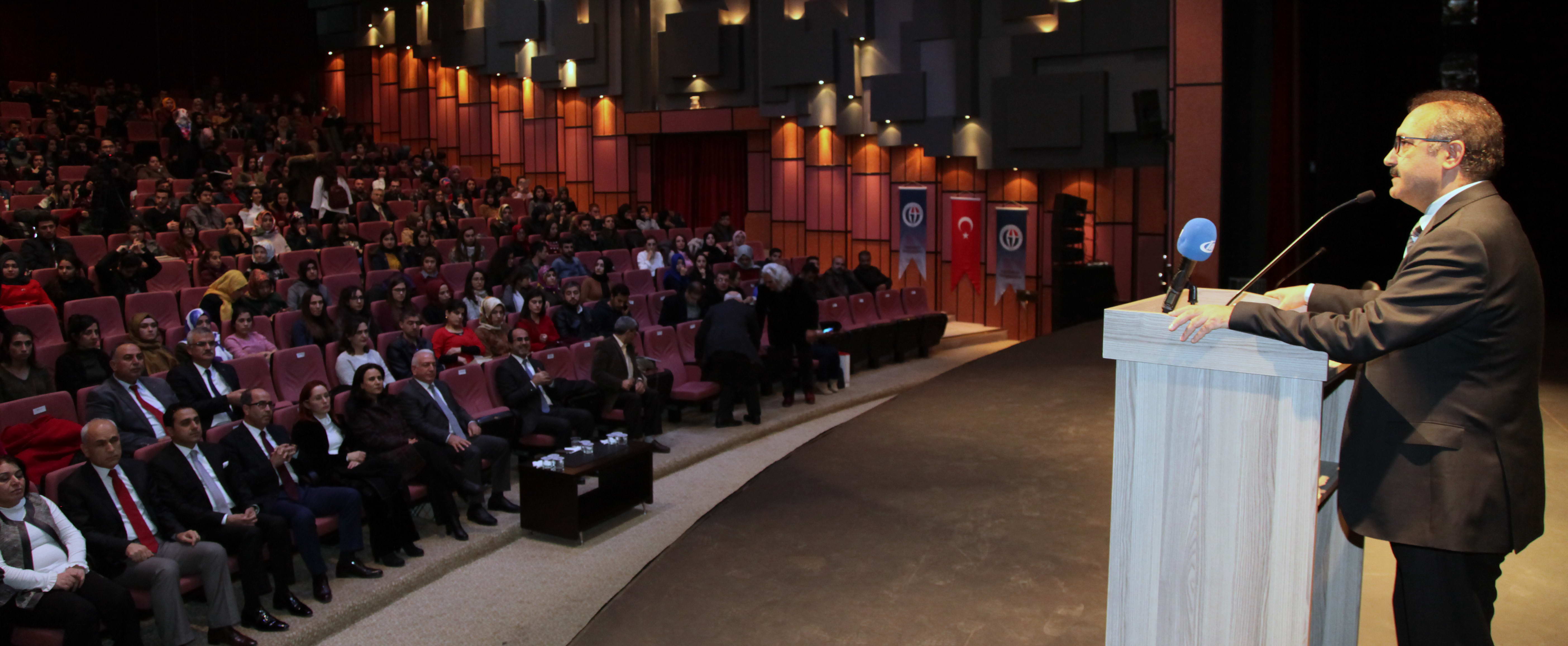 Gaziantep Üniversitesi (GAÜN) Atatürk Kültür Sahnesinde; Atatürk Kültür, Dil ve Tarih Yüksek Kurumu ve Türk Dil Kurumu işbirliğiyle, “2017 Türk Dili Yılı” olması nedeniyle, Fırat Üniversitesi Öğretim Üyesi Prof. Dr. Ahmet Buran tarafından ”Dilimiz Kimliğimizdir” konferansı verildi.