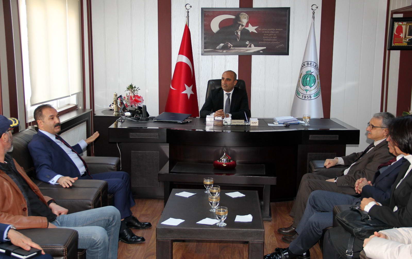 Gaziantep Üniversitesi (GAÜN) Rektörü Prof. Dr. Ali Gür, Rektör Yardımcısı Prof. Dr. Metin Bedir, Rektör Danışmanı Prof. Dr. Süleyman Ganidağlı, Genel Sekreter Doç. Dr. Ayhan Doğan ve Genel Sekreter Yardımcısı Nuh Okumuş’tan oluşan heyet, Araban Kaymakamı Emin Bağlı’yı ve Araban Belediye Başkanı Mehmet Özdemir’i makamında ziyaret etti.