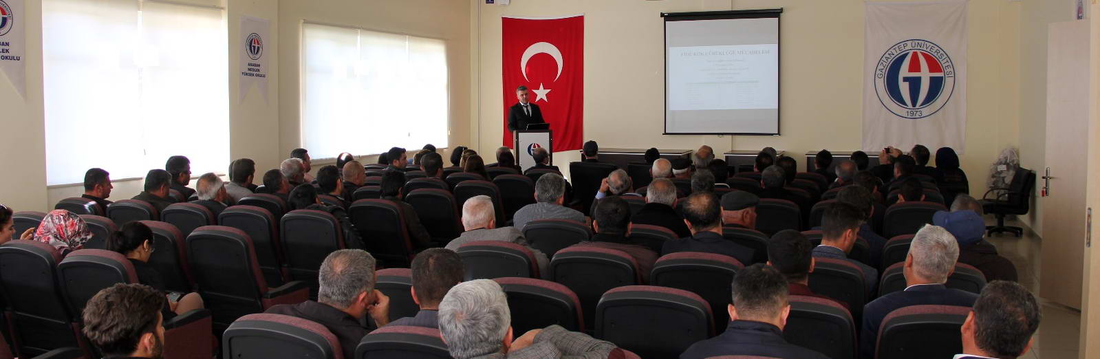 Rektör Prof. Dr. Gür ve GAÜN üst yönetimi; Araban Kaymakamı, Belediye Başkanı, Jandarma Komutanı, Emniyet Amiri, İlçe Tarım Müdürü, Milli Eğitim Müdürü, Ziraat Odası Başkanı, muhtarlar ve çiftçilerin katılımıyla; Araban Meslek Yüksekokulu, Araban Kaymakamlığı ve Araban Belediyesi işbirliğinde hazırlanan “Sarımsak, Nohut ve Pamuk Bitkilerinin Önemli Hastalıkları ve Zararları” konulu ”I. Çiftçi Eğitimi Semineri” GAÜN Araban Meslek Yüksekokulu Konferans Salonu’nda gerçekleştirildi.