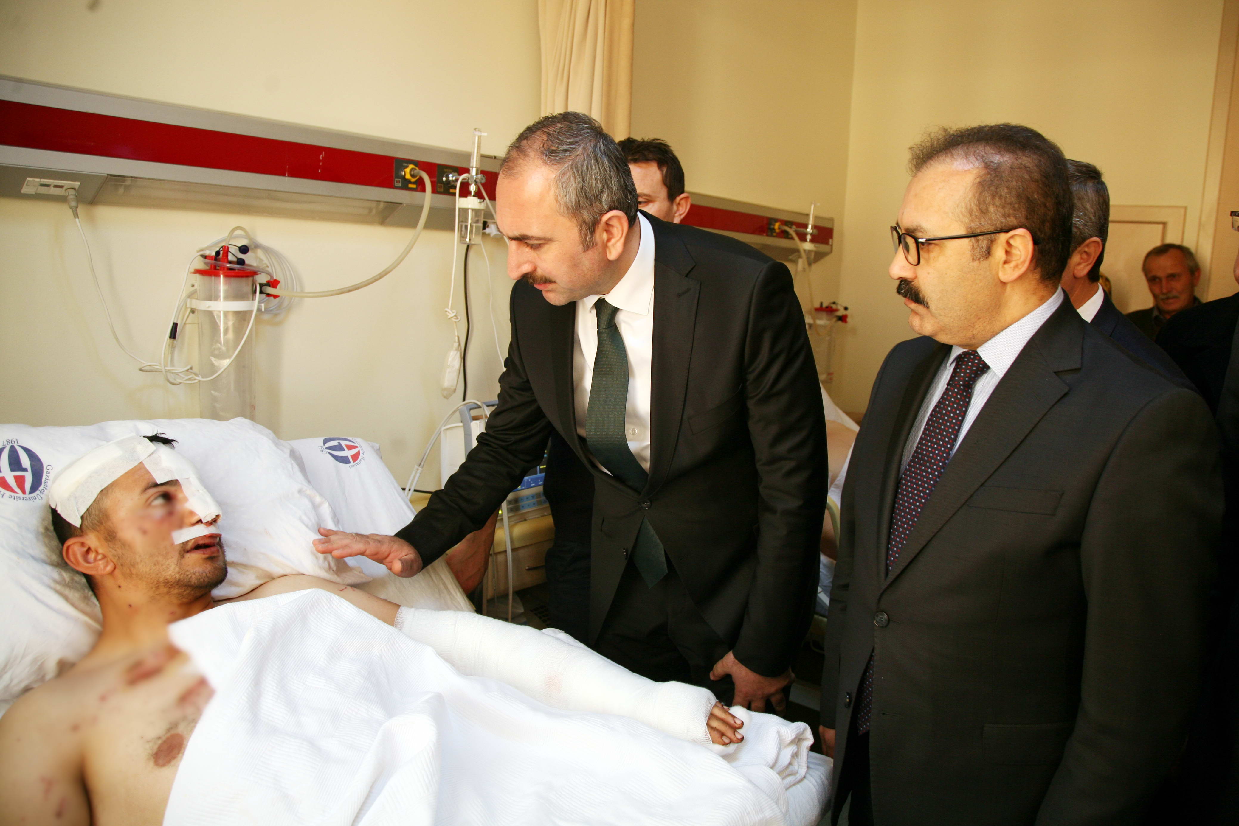 Adalet Bakanı Abdulhamit Gül, Türk Silahlı Kuvvetleri tarafından düzenlenen Zeytin Dalı Harekatı’nda yaralanarak Gaziantep Üniversitesi Şahinbey Araştırma ve Uygulama Hastanesi’nde tedavi altına alınan askerler ile yakınlarına geçmiş olsun ziyaretinde bulundu.