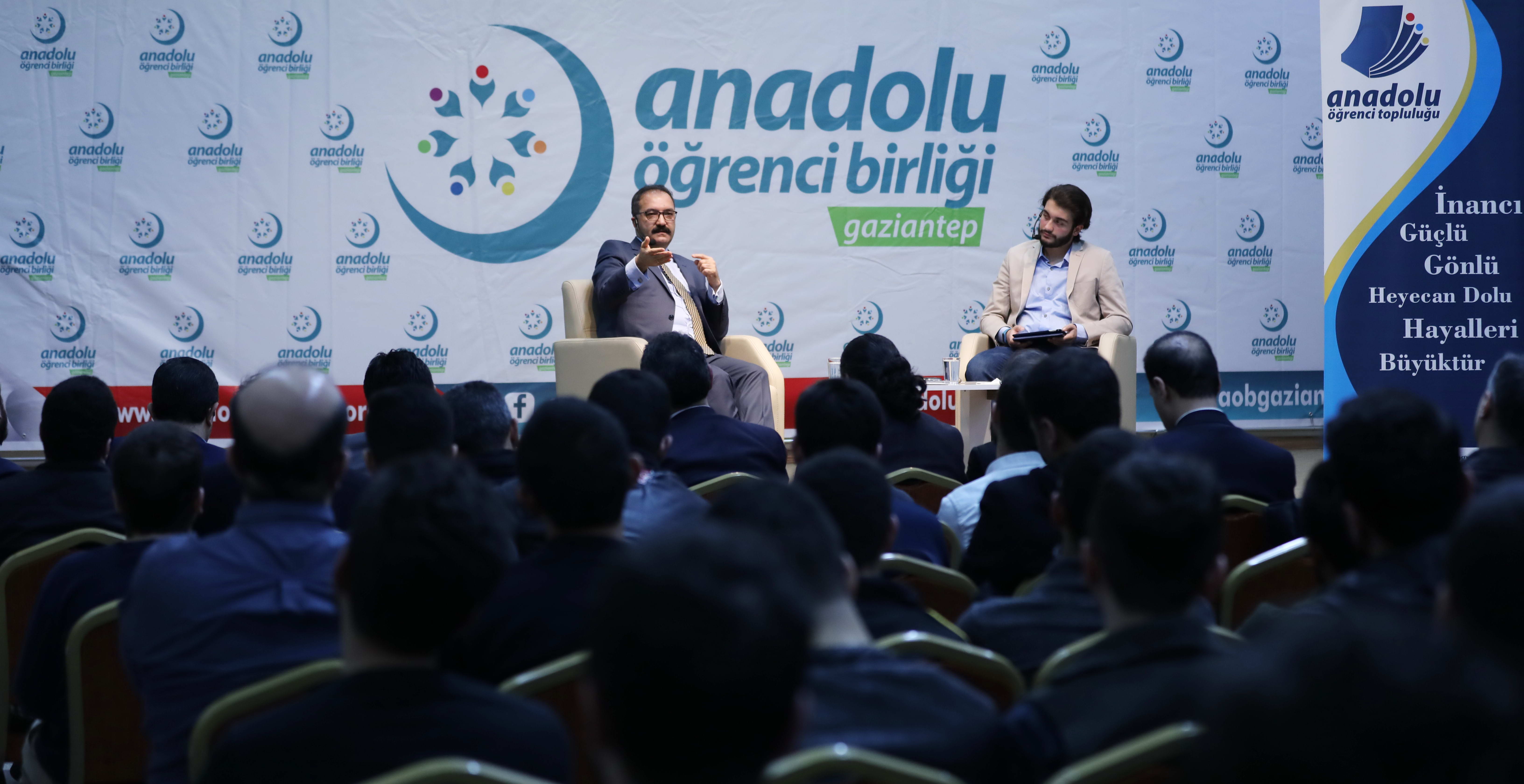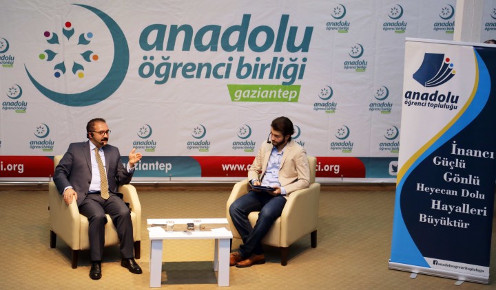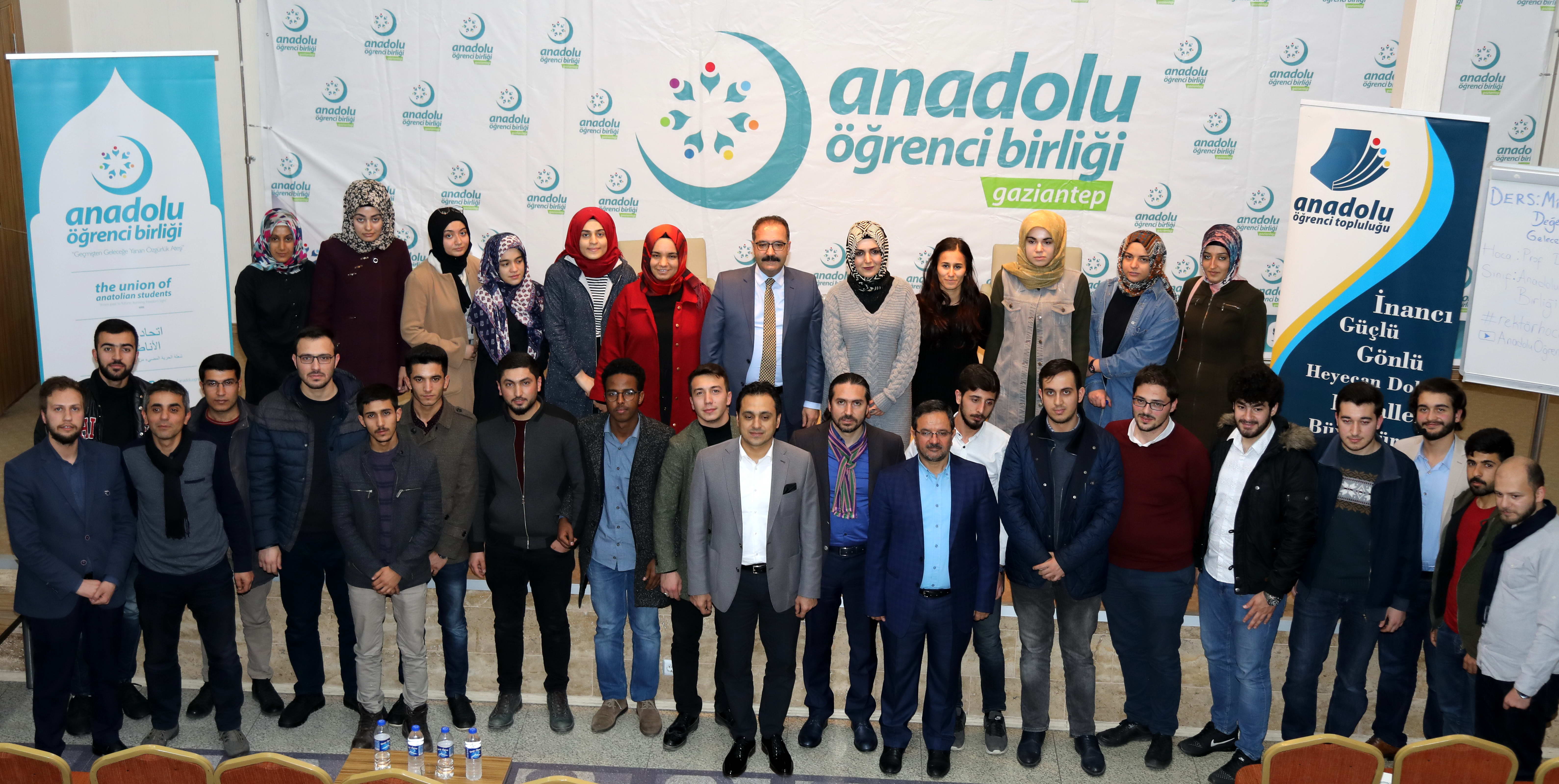 Anadolu Öğrenci Birliği tarafından Bülbülzade Vakfı’nda düzenlenen Milli ve Manevi Değerler Işığında Gelecek Vizyonu konulu söyleşisinde, gençlerin hedeflerine varabilmesi için birçok yol olduğunu ve her gencin bir yolda yürüdüğünü belirterek başlayan GAÜN Rektörü Prof. Dr. Ali Gür, “Size göre daha emniyetli, daha güvenli olduğunu düşündüğünüz yoldan yürüyorsunuz. Başkası da daha uzun ve kendisine göre daha emniyetli bir yolu tercih edebilir. Ama, gerektiğinde birlikte yürüyün. Dolayısıyla bu yollarda birlikte birbirinizi ötekileştirmeden, İhanet olmamak kaydıyla rahatla bir arada bulunabilir, yürüyebilirsiniz” telkininde bulundu. Gaziantep Üniversitesi’ni en fazla ön planda tutan şeyin bölgemizin konjoktürel durumu olduğu vurgusunu yapan Rektör Prof. Dr. Gür, Gaziantep Üniversitesi’nin bu konudaki önemiyle ilgili de şu değerlendirmeyi yaptı: “Gaziantep gibi bir yerde, Ortadoğu’nun giriş kapısında, Gaziantep Üniversitesi gibi kaliteli bir üniversitenin olması çok önemli. Ama, burada önemli olan bir şey daha var. Belli alanlarda üniversitemiz çok kaliteli. Bunu hep söylüyorum, mühendislik alanında. Çünkü, mühendisliğimiz ODTÜ geleneğinden gelmekte ve eğitim dili İngilizce olması nedeniyle öğrencilerimiz hem dil eğitimi hem de kaliteli eğitim nedeniyle biraz zorlanmaktadırlar. Şu anda Türkiye’ye bir marka değeri oluşturan ve patenti de bize ait olan, diğer üniversitelere uygulama önerisinde bulunulan intörnlük uygulaması harika bir projedir.”
