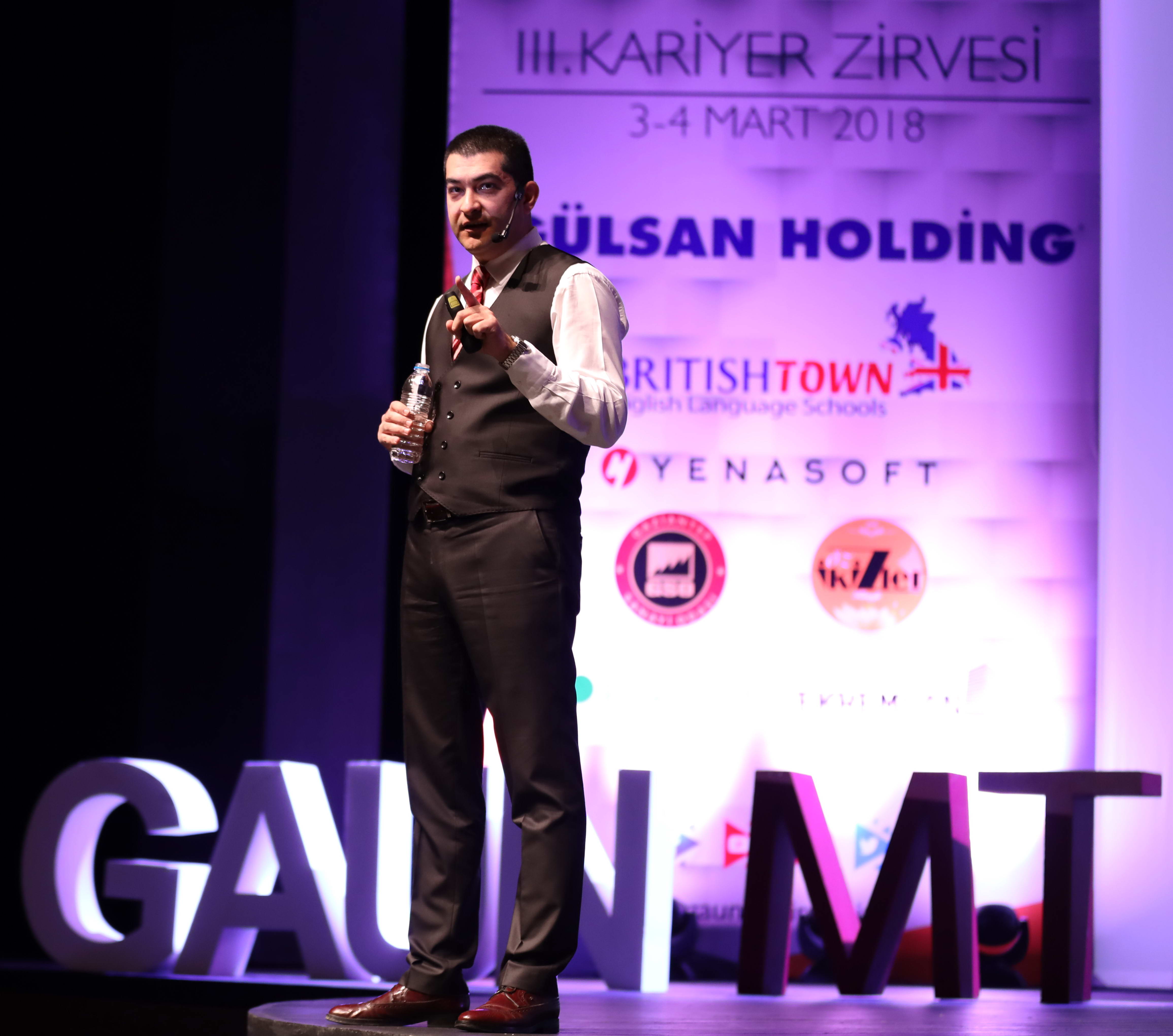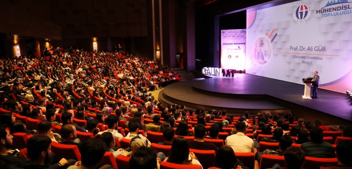 Konuşmasına hiçbir başarının tesadüfle gelmeyeceğini belirterek başlayan GAÜN Rektörü Prof. Dr. Ali Gür ise, “Ben tesadüflere inanan bir insan değilim. Tesadüf diye bir şey yoktur. Eğer tesadüf olsaydı hiç kimsenin çalışmasına, başarı azmine asla gerek olmazdı. Hayatta tesadüf değil, fırsat kapısı aralandığında olmak vardır. O yüzden donanımınızla, zekanızla, kabiliyetinizle ve en önemlisi de azminizle hazırlıklı olun” vurgusunu yaptı. Öğrencilere başarının ipuçlarını verirken, kendi hayatından örnekler sunan Rektör Prof. Dr. Ali Gür özetle şunları söyledi: “Ben Tıp Fakültesi okurken bir yandan okuyor, diğer yandan da çalışıyordum. Okulumu zamanında bitirdim, bir gün bile fire vermedim. Hikayenin gerisinde bir de 22 yaşında evlilik var. Gece gündüz çalışarak, istediğim branşı yüksek bir puanla kazanarak uzmanlığa adım attım. 6 ay gece, gündüz yabancı dil çalıştım. Eğer önünüzde bir bariyer olacaksa, aktif çalışıp onu aşmanız lazım. Yardımcı doçent oldum, ABD’nin verdiği önemli bir bursu kazanıp ailemle İngiltere’ye gittim. Birçok aşamalardan geçtikten sonra karşınızda, ilçeden çıkıp rektör olan bir hocanız, ağabeyiniz var. Lütfen bir şeyi elde etmek için başka şeyleri ihmal etmeyin. Ya başarı hikayesi yazarsınız, ya da başkalarının yazdığı başarı hikayelerini okursunuz. Hangisini tercih edersiniz? Lütfen başarı hikayelerini siz yazın. Sizin yazdıklarınızı ve kariyer mücadelenizdeki o azminizi başkaları örnek alsın. Başarısız olmadan zirveye ulaşan hiçbir sanayici yoktur. Başarısızlıklar, yenilgiler sizin azminizi artırır. Travma ve önünüze konan engellere ne kadar çok dayanabilir, pes etmezseniz o kadar başarılı olur ve kariyerin zirvesine çıkarsınız. Bir yandan kariyer olacak, bir yandan sanatsal aktivitelerin içerisinde olacaksınız, bir yandan da okumayı ihmal etmeyeceksiniz. Şunu unutmayın asıl başarılı olanlar, üniversite sınavında iyi bir puan alıp iyi bir mühendislik okuyanlar, yani matematiksel zekası olanlar değil, sosyal zekası olanlardır.”