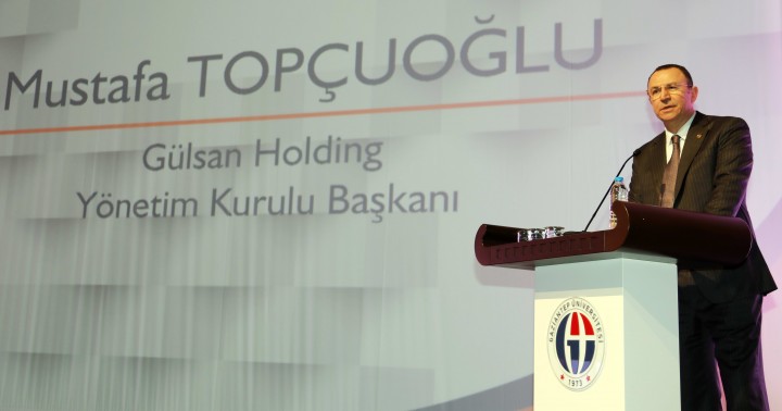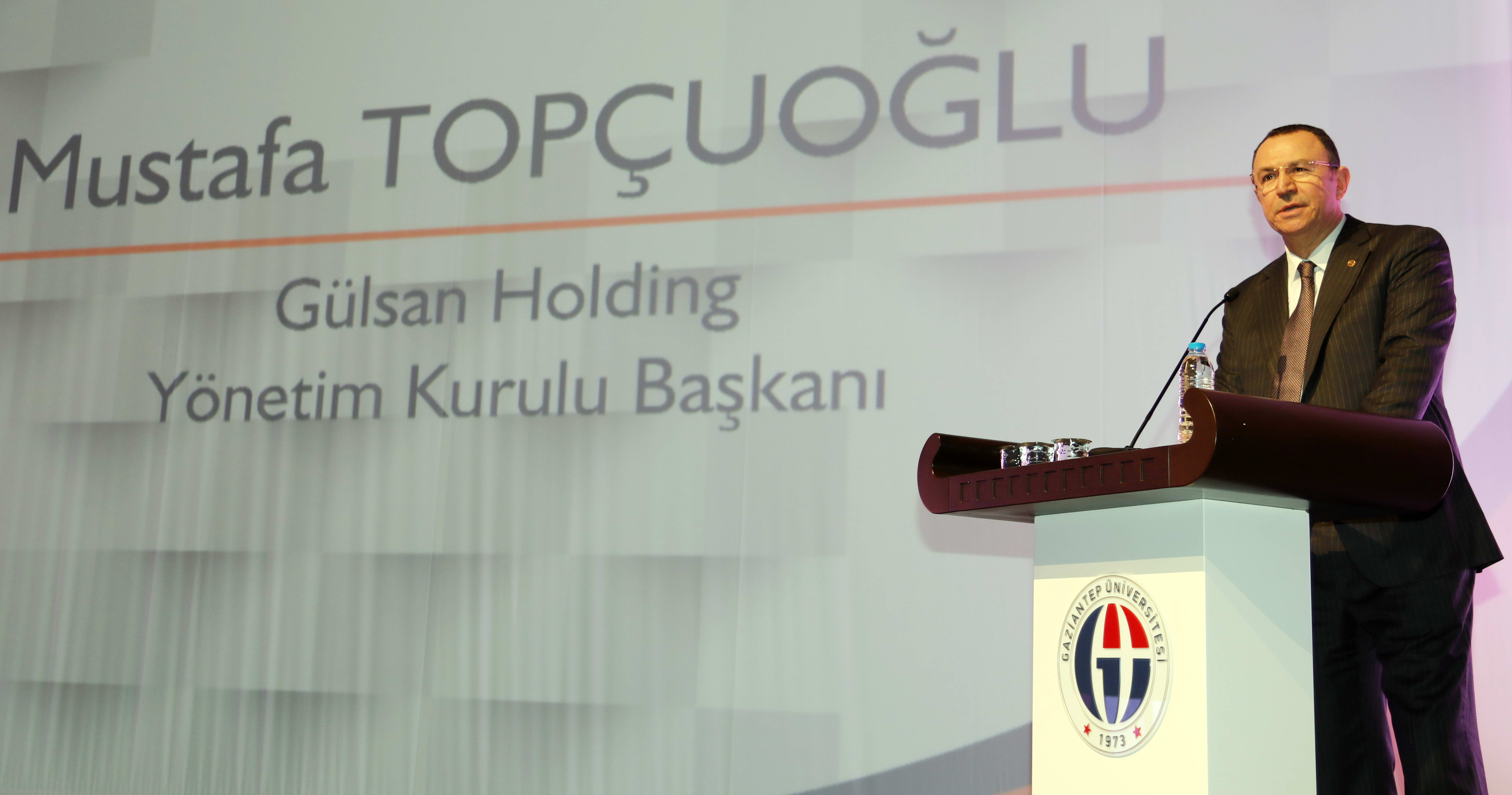 Öğrencilere GÜLSAN Holding’in kuruluşundan buyana gelen süreci anlatarak başladığı konuşmasında, “Ne iş yaparsanız yapın, hayatın her noktasında detaya girin. Ancak farklı olursanız başarılı olursunuz” tavsiyesinde bulunan Gülsan Holding Yönetim Kurulu Başkanı ve Gaziantep Sanayi Odası Meclis Başkanı Mustafa Topçuoğlu ise, “Vizyonunzu ve hedefinizi mutlaka üniversitede belirleyin. İşe başlarken sadece işi yapmak için değil, işin sonucuna da odaklanın. İyi bir dinleyici olun. Çünkü, iyi bir dinleyici sabırlı olur, dikkatlice dinler. Sözü bölmez, araya girmez, kendini ispat etmeye çalışmaz. Önemli olan sizden başkalarının ne alacağından çok sizin başkalarından ne aldığıdır. Çok aceleci olan kişiler, aslında karşıyı dinlemiyor. O kendi kafasında oluşturduklarını paylaşmaya çalışıyor. Bu seferde başkalarının fikirlerinden yeteri kadar faydalanamıyor” görüşünü dile getirdi.