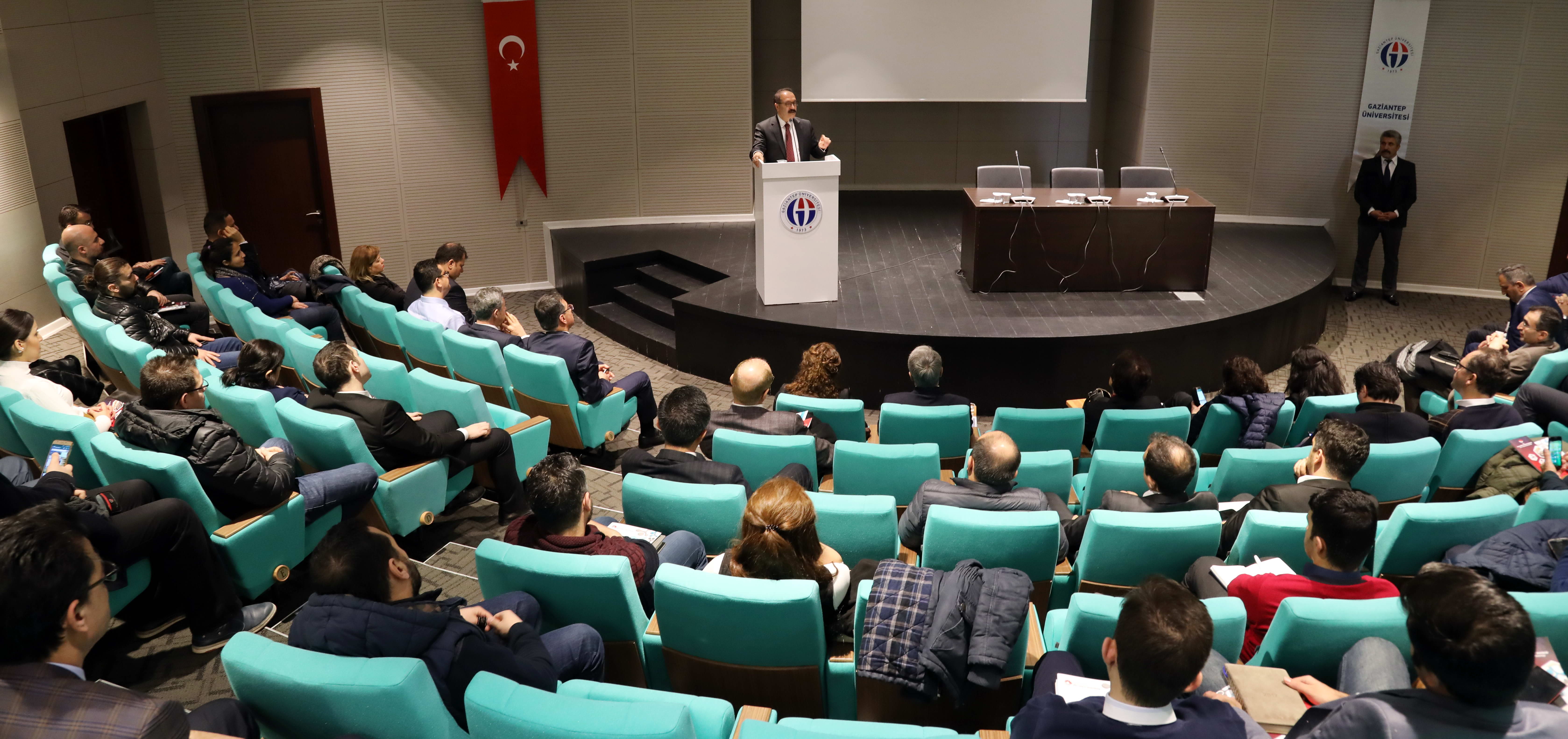 Programın açılış konuşmasını yapan GAÜN Rektörü Prof. Dr. Ali Gür, “Hep, Sanayi- Üniversite işbirliği diyoruz. Eğer şimdiden bunun altyapı hazırlığını yapmazsak koşan bir ülkede geride kalacağız. Gaziantepli iş adamlarımız riskler alarak ihracatta Gaziantep’te 5. sıraya yerleştiler. Bu gerçekten takdir edilecek bir şey. Ortalama olarak Bakanlığımızın istatistiki göstergelerine göre 825 adet AR-GE ve 150’nin üzerinde Tasarım Merkezi olduğunu görüyoruz. Gaziantep’in güçlü ve inanılmaz bir potansiyelimiz var. Eğer bu potansiyel enerjimizi, kinematik enerjiye dönüştürebilirsek Gaziantep’i kimse tutamaz. Yeter ki, birileri bir hareketlendirme yapsın. Hemen bir modelleme, hızlı bir şekilde gelişebiliyor. 2017 yılından sonra hızlı bir şekilde AR-GE ve Tasarım Merkezleri oluştu. Gaziantep’in bu potansiyeline göre 100 adet ARGE Merkezi olması gerekiyor. Tabii biz Üniversite olarak kabuğumuzu kırıp, sizlere ulaşılabilir tüm yolları açmamız gerekiyor. Bakanlığımızın verdiği teşvikleri ortak paydada buluşturup cazibe merkezi ve motivasyon oluşturmak istiyoruz. Üniversiteler danışmanlık, liderlik yapar ve mentör olarak kontrol edip gelecek vizyonu oluşturur. Sanayici ise emeğini ve parasını koyar. Sarmalın üçüncü ayağı toplum ise bu iki üretken yapının ortaya koyduğu yükselmiş GSMH’den yükselen payını alır. Biz toplumu bu şekilde geliştirebiliriz. Sanayi 4.0’ın tartışıldığı günümüzde yüksek katma değerli ürünlerden bahsedemez isek bir gün gelir pes ederiz. ARGE, Üretim Geliştirme ve Tasarım Noktasında yeni modeller üretmek zorundayız. Kilo başı değil marka değeri üzerinden gelecek iş adamları yetiştirmek zorundayız. Gaziantep sanayisi çok özel model. Aile şirketlerimiz var ve saygı duyuyoruz. Ataerkil gelen ve geçmişten gelen bağlılıklarımız noktasında çok iyiyiz. Bu durum paranın yanlış ellerde kullanımını engeller ve birleştiricidir. Tabii ki, dedelerimiz ve atalarımızdan tecrübeleri alalım. Misyon ve vizyon olarak onları geçmek zorundayız. Ülke olarak önemli avantajımız nadasa bırakılmış arazi gibi verimli olmamız ve problemler karşısında pratik çözüm üretme kapasitesi olan gençlerimiz var. Biz buna göre güveniyoruz. Bu nedenle daha kurumsal yapılara dönüşmek ve 2023, 2071 vizyonuna giderken çok daha fazla çalışmalıyız” şeklinde konuştu.